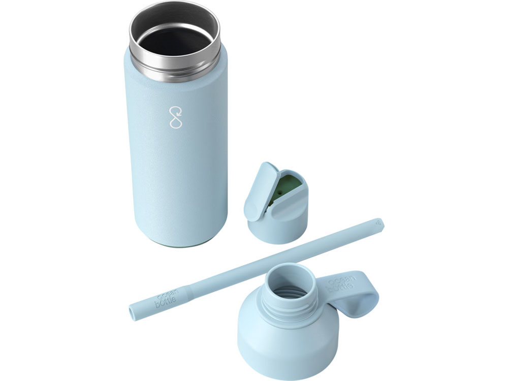 Бутылка Ocean Bottle GO емкостью 500 мл имеет двойную изоляцию стенок, позволяющую сохранять напитки холодными до восемнадцати часов, а также имеет функцию двойного открывания, что делает ее идеальной для путешествий. Бутылка имеет герметичную крышку и обеспечивает легкий доступ для наполнения, очистки и добавления льда. Бутылка GO сочетает в себе все лучшие характеристики оригинальной бутылки Ocean Bottle, но имеет более спортивный дизайн, позволяющий пить, ипользуя только одну руку. Каждая бутылка Ocean Bottle полностью углеродно-нейтральна и позволяет заменить 1000 пластиковых бутылок для улучшения условий жизни прибрежных сообществ. Бутылка на 90% изготовлена из переработанной нержавеющей стали и других переработанных материалов. За счет силиконовой трубочки бутылку GO можно использовать только для холодных напитков. Поставляется в подарочной коробке из переработанного картона, полученного из ответственных источников. Recycled stainless steel.