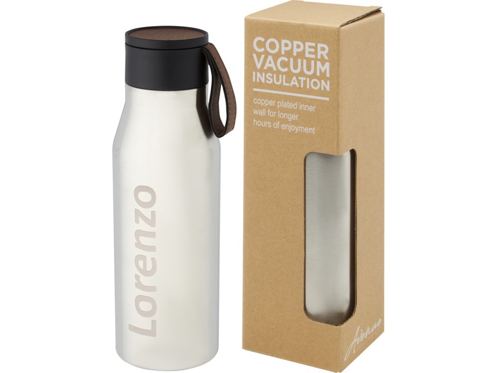 Термобутылка из нержавеющей стали с медной вакуумной изоляцией, выполненная в классическом и элегантном дизайне. Имеет ремешок из искусственной кожи ПУ и элемент на крышке. Идеальный вариант для лазерной гравировки, чтобы выделить логотип серебристым цветом и создавать красивый визуальный эффект. Благодаря двустенной конструкции, медной вакуумной изоляции и нержавеющей стали 18/8 напитки долгое время остаются горячими или холодными. Протестировано и одобрено согласно немецкому законодательству о безопасности пищевых продуктов (LFGB), а также проверено на содержание фталатов согласно нормам REACH. Объем 500 мл. В коробке из переработанного картона.