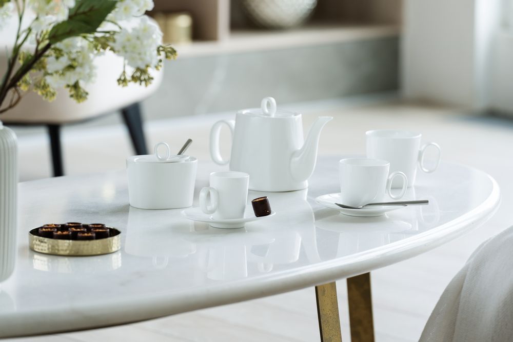 Благодаря особой форме у чайника и сахарницы Frammenti увеличено место для персонализации: эти предметы почти всегда остаются на столе, поэтому логотип будет на виду как можно дольше.