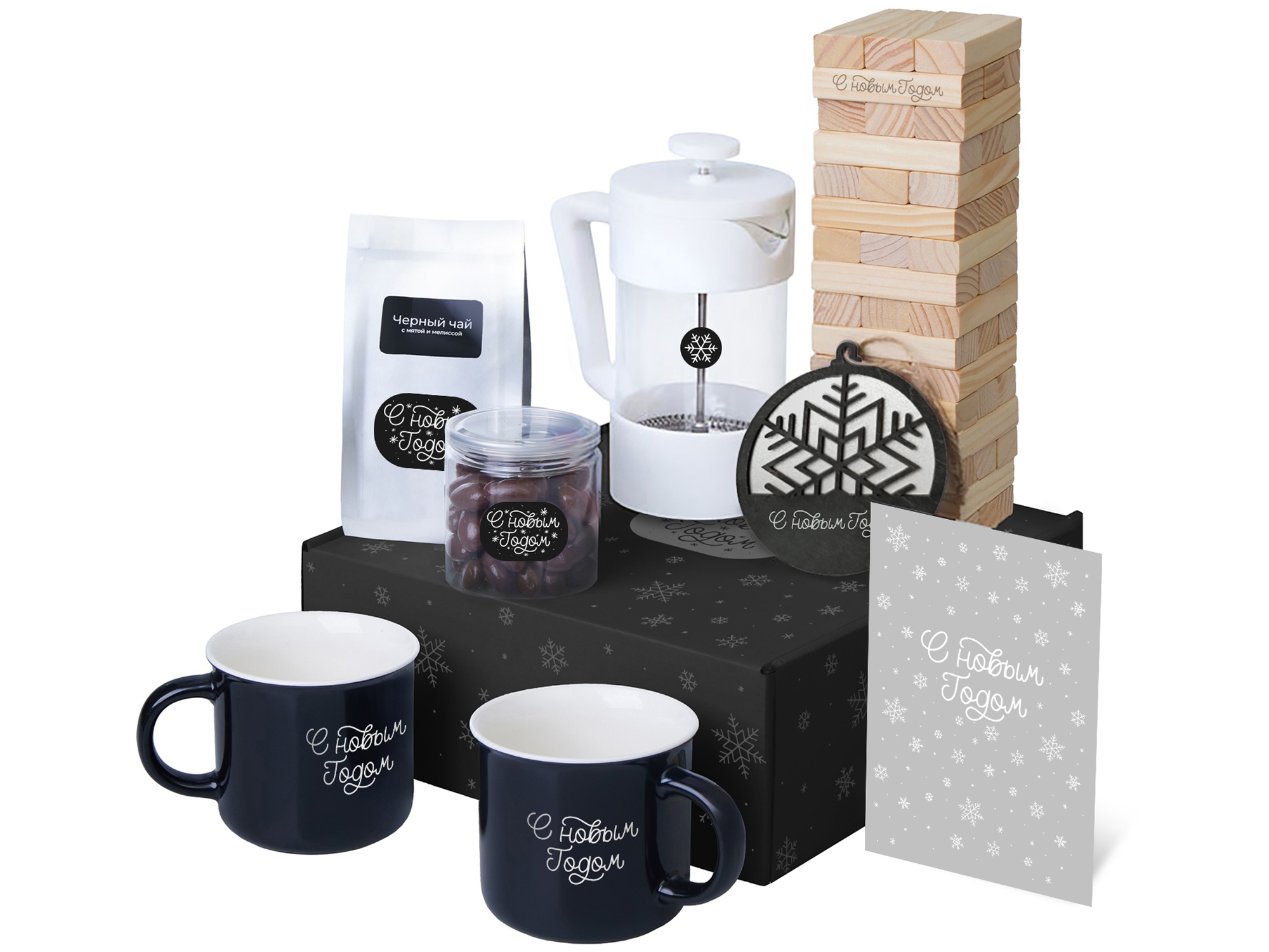 Подарочный набор c френчпрессом, кружками и чаем, белый