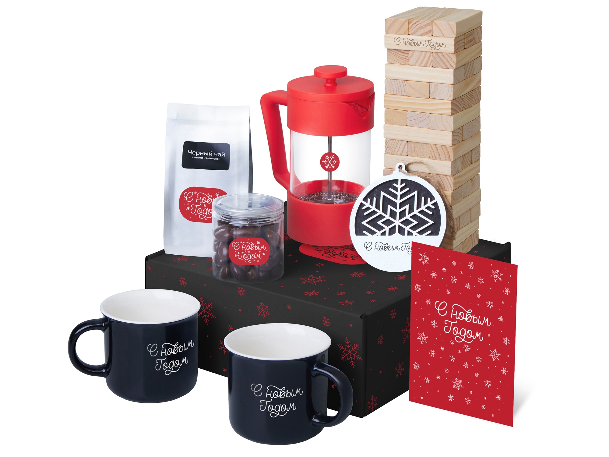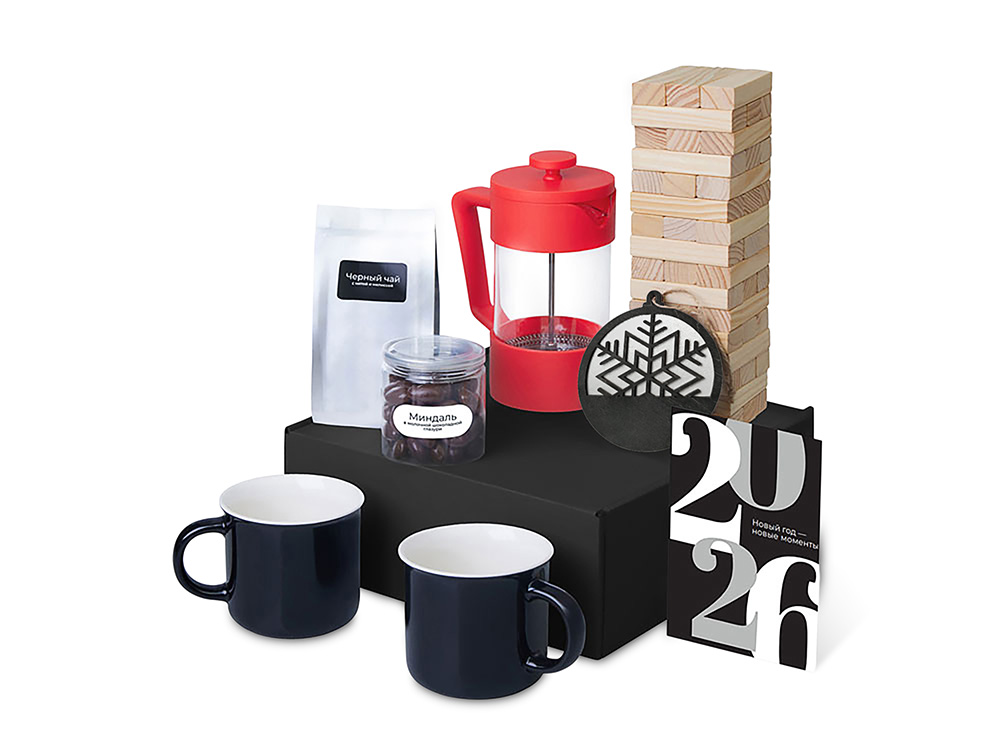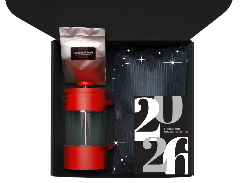 Подарочный набор c френчпрессом, кружками и чаем, красный