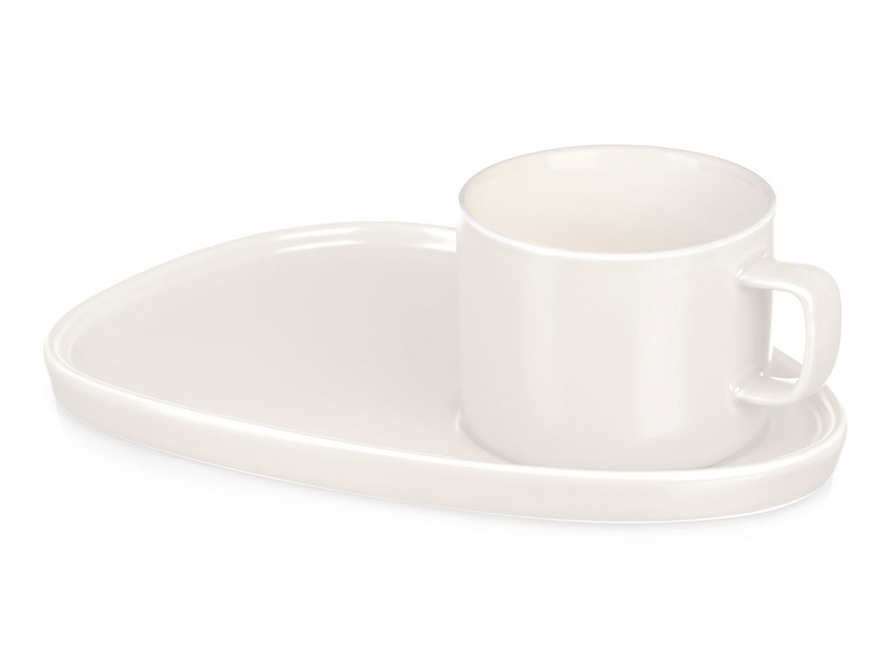 Чайная пара Brighton : блюдце овальное, чашка, коробка, белый