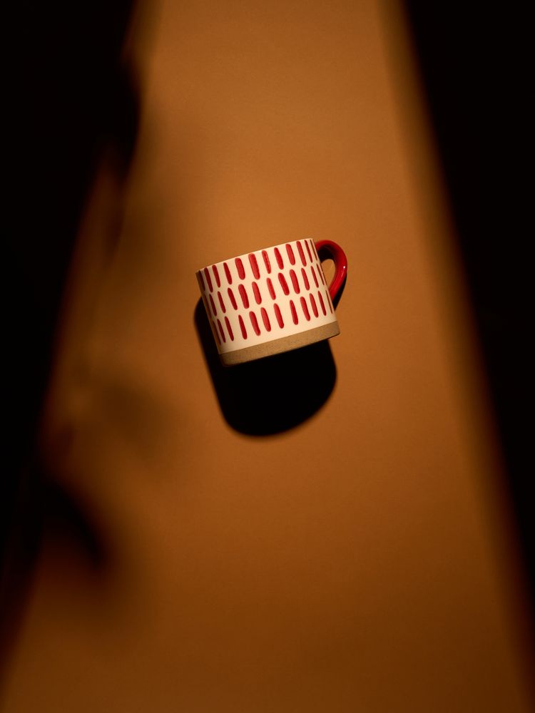 Образ кружки в уютном деревенском стиле завершает как будто необработанный керамический ободок у основания.