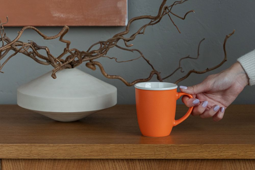 Матовая и будто бы бархатистая глазурь, отогнутый кремово-белый край и плавная форма — кружку Doppel настолько приятно держать в руках, что с ней не захочется расставаться.