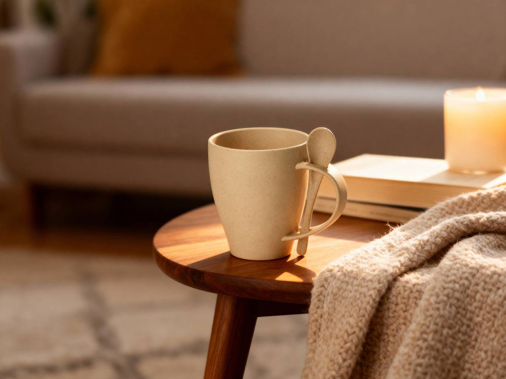 Пшеничная кружка Nina с ложкой, 300ml, бежевый