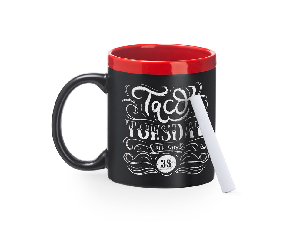 Кружка с покрытием для рисования мелом объемом 350 мл. Mел в комплекте. Поставляется в белой коробке.