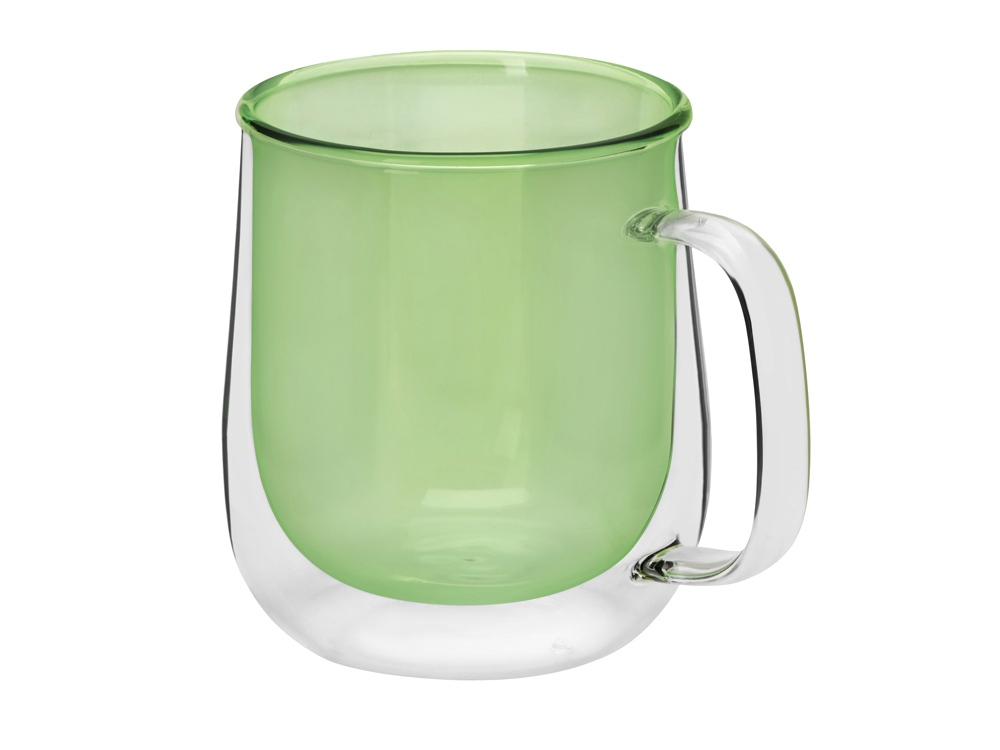 Кружка выполнена из боросиликатного стекла, которое отличается большей прочностью и легкостью, нежели стекло обычное, но при этом столь же безопасно для человека. В этой кружке можно сервировать и горячие, и холодные напитки, поскольку боросиликатное стекло стойко к высоким температурам.