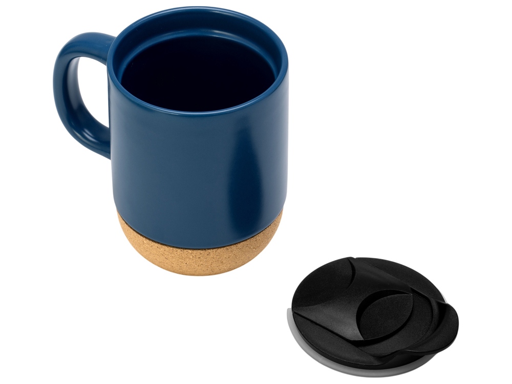 Кружка Denpasar с пробковым дном и крышкой, цветная с двух сторон, бензиновый синий