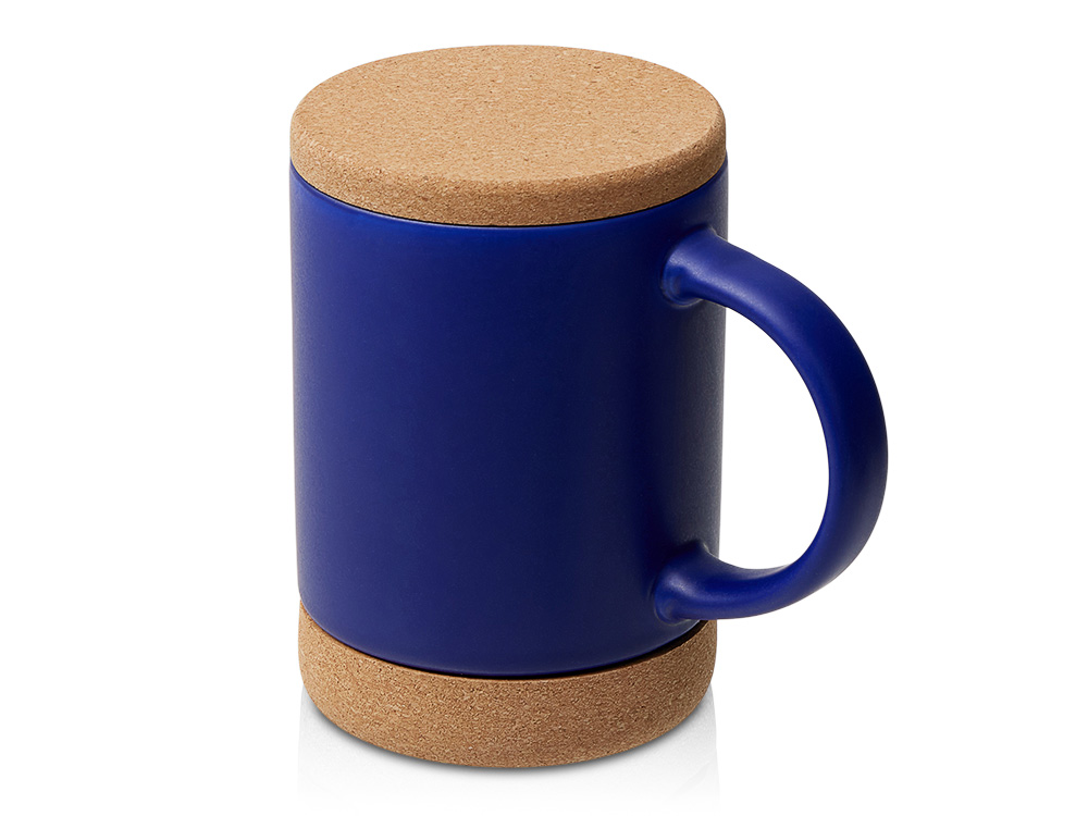 Кружка 450 мл с пробковым дном с крышкой Корк & Бон, глубокий синий