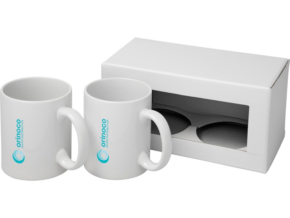 Набор из двух керамических кружек объемом 330 мл. Упакован в белой коробке с окошком. Керамика.