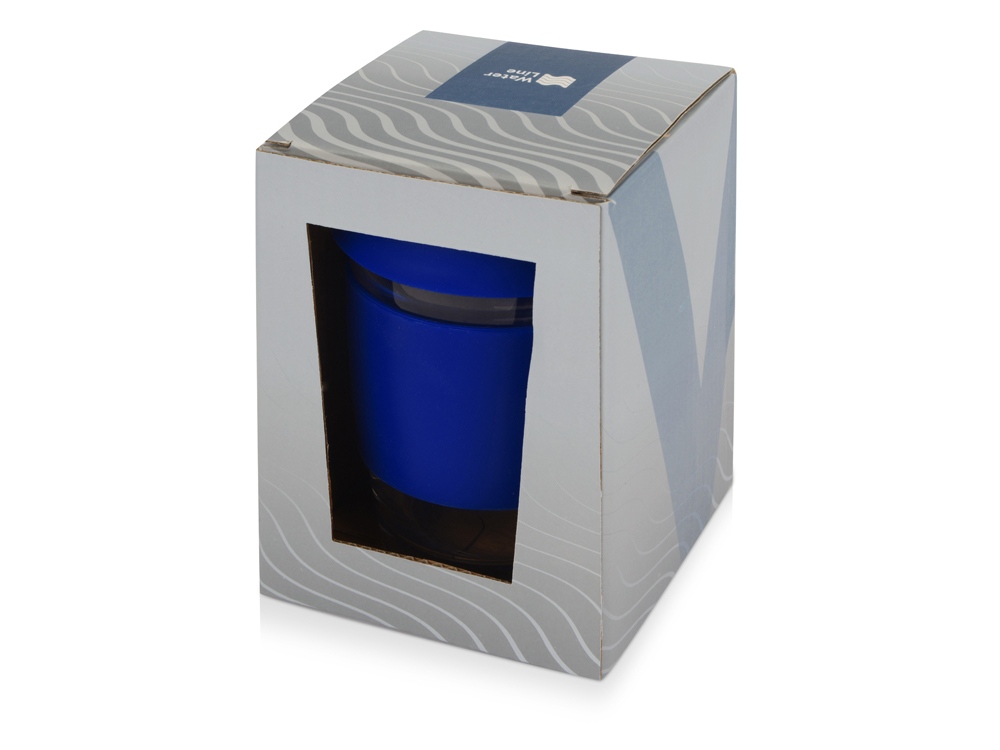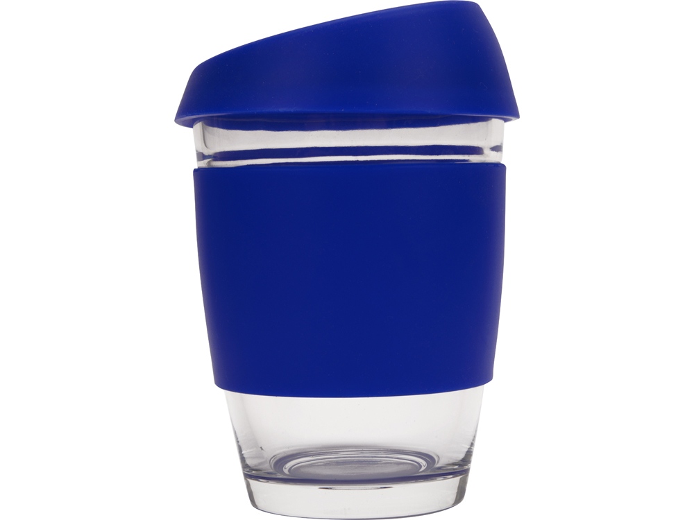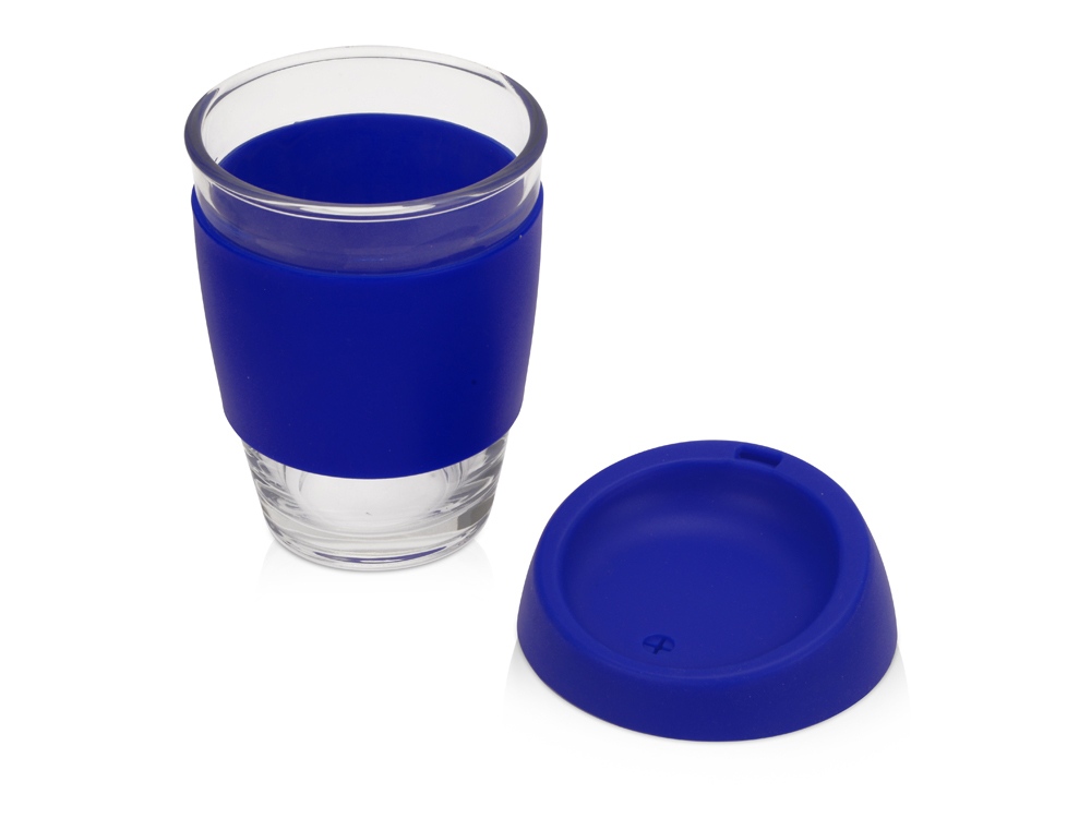 Стеклянный стакан Monday с силиконовой крышкой и манжетой, 350мл, синий