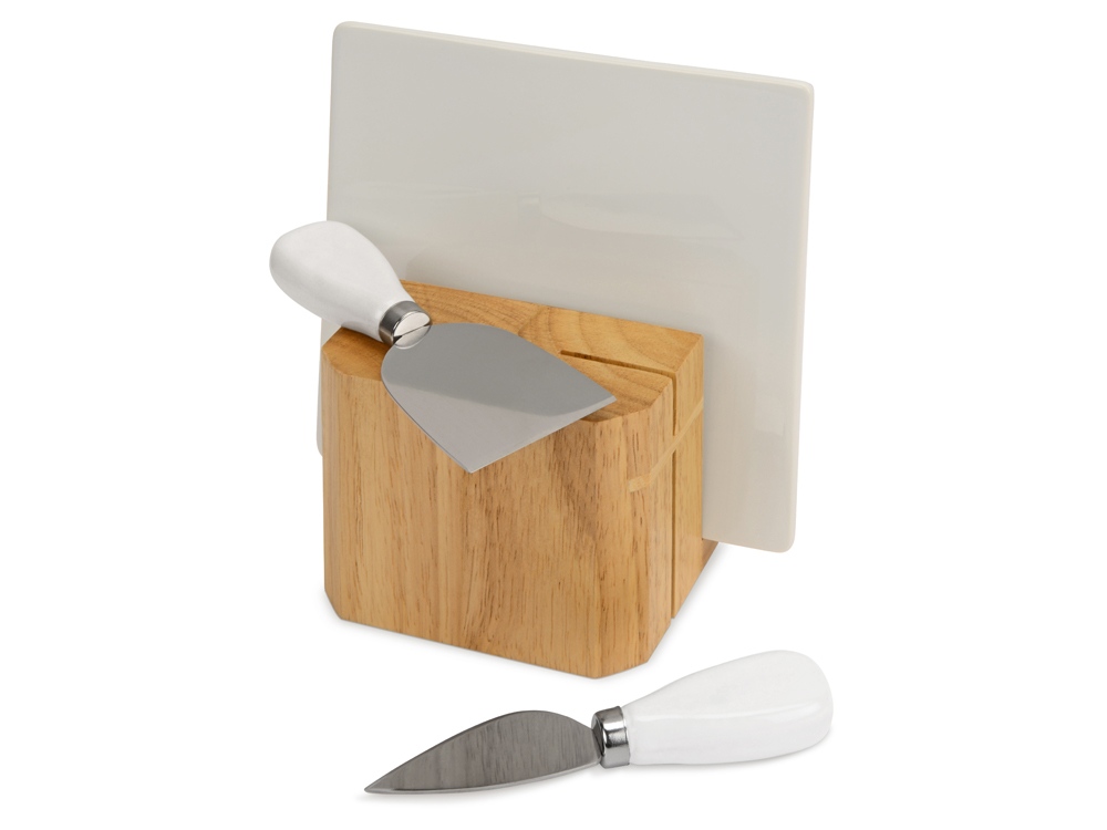 Набор для сыра Cheese Break: 2 ножа керамических на деревянной подставке, керамическая доска