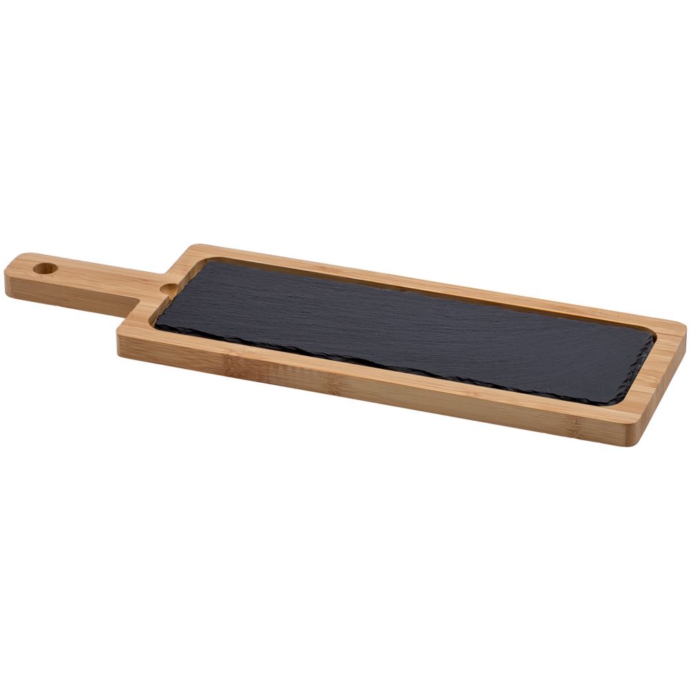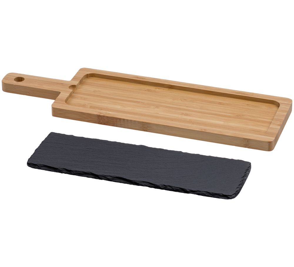 Сервировочная доска из бамбука со сланцевой вставкой может использоваться для оригинальной подачи сыра, хлеба и любых других закусок. За сланцевой посудой легко ухаживать, она не подвержена распространению грибка и бактерий. Перед первым применением доску следует помыть с использованием моющих средств.