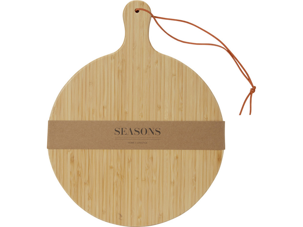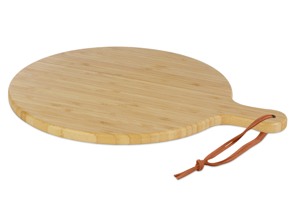 Разделочная доска Delys изготовлена из бамбука и идеально подходит для частных лиц и предприятий, которые предпочитают более экологичные товары. Диаметр доски: 30,5 см. Длина ручки: 8 см. Толщина доски: 1,4 см. Не подходит для микроволновой печи или посудомоечной машины.