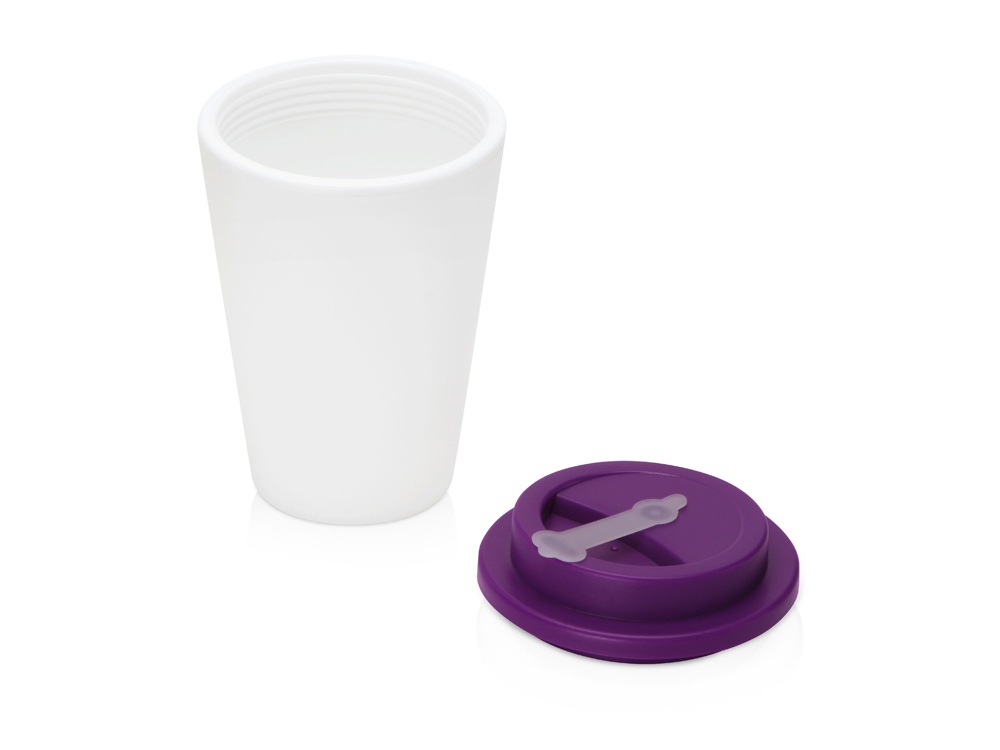 Пластиковый стакан Take away с двойными стенками и крышкой с силиконовым клапаном, 350 мл, белый/фиолетовый