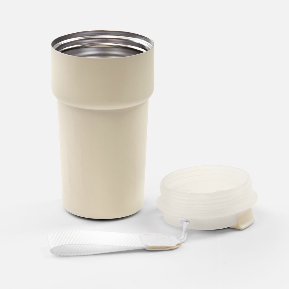 Смарт-термостакан в металлическом корпусе с легким рельефом.