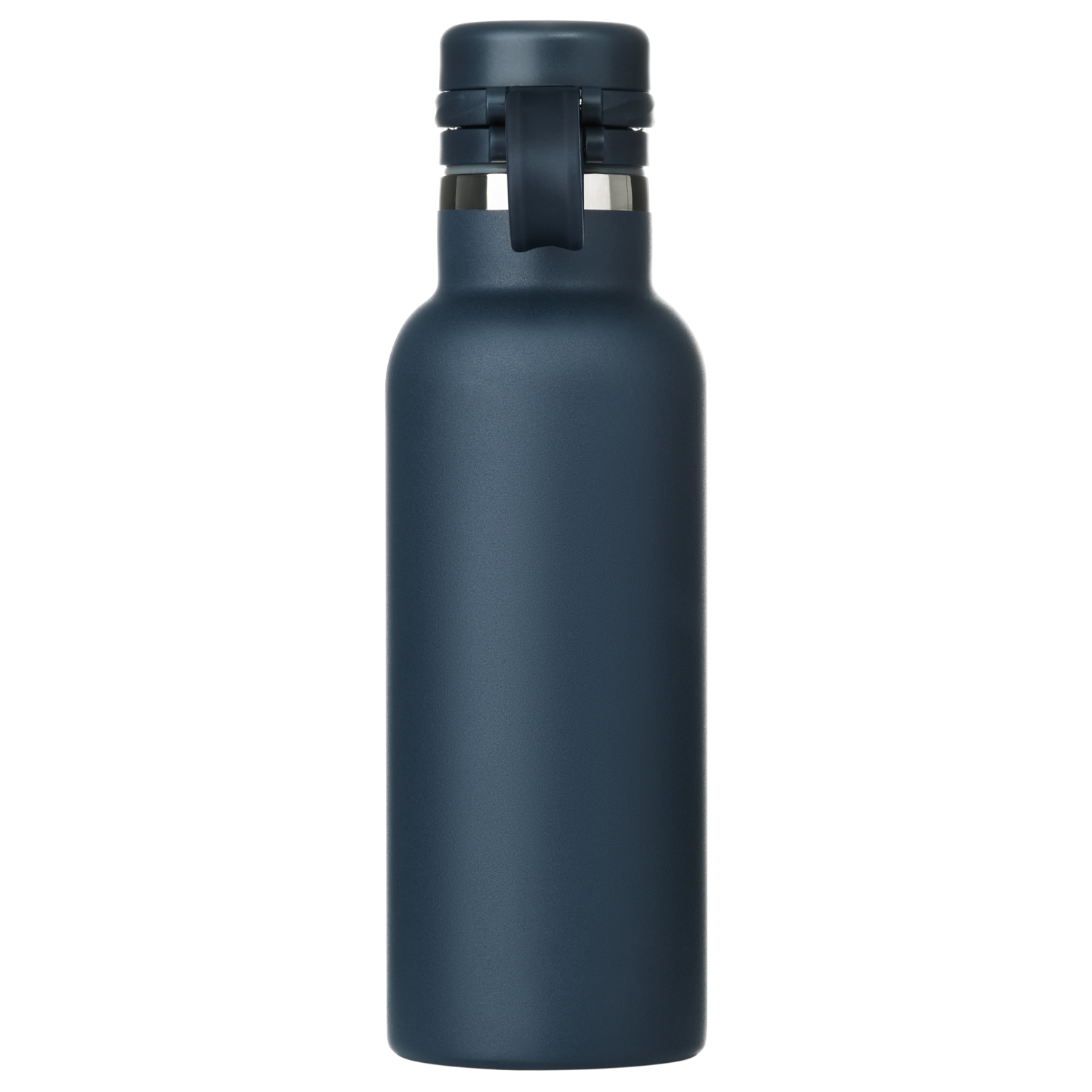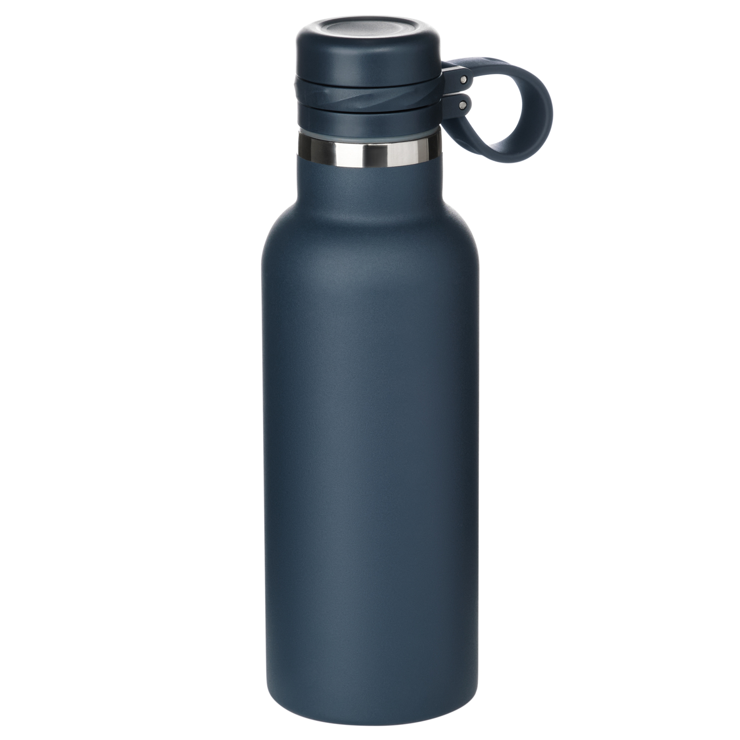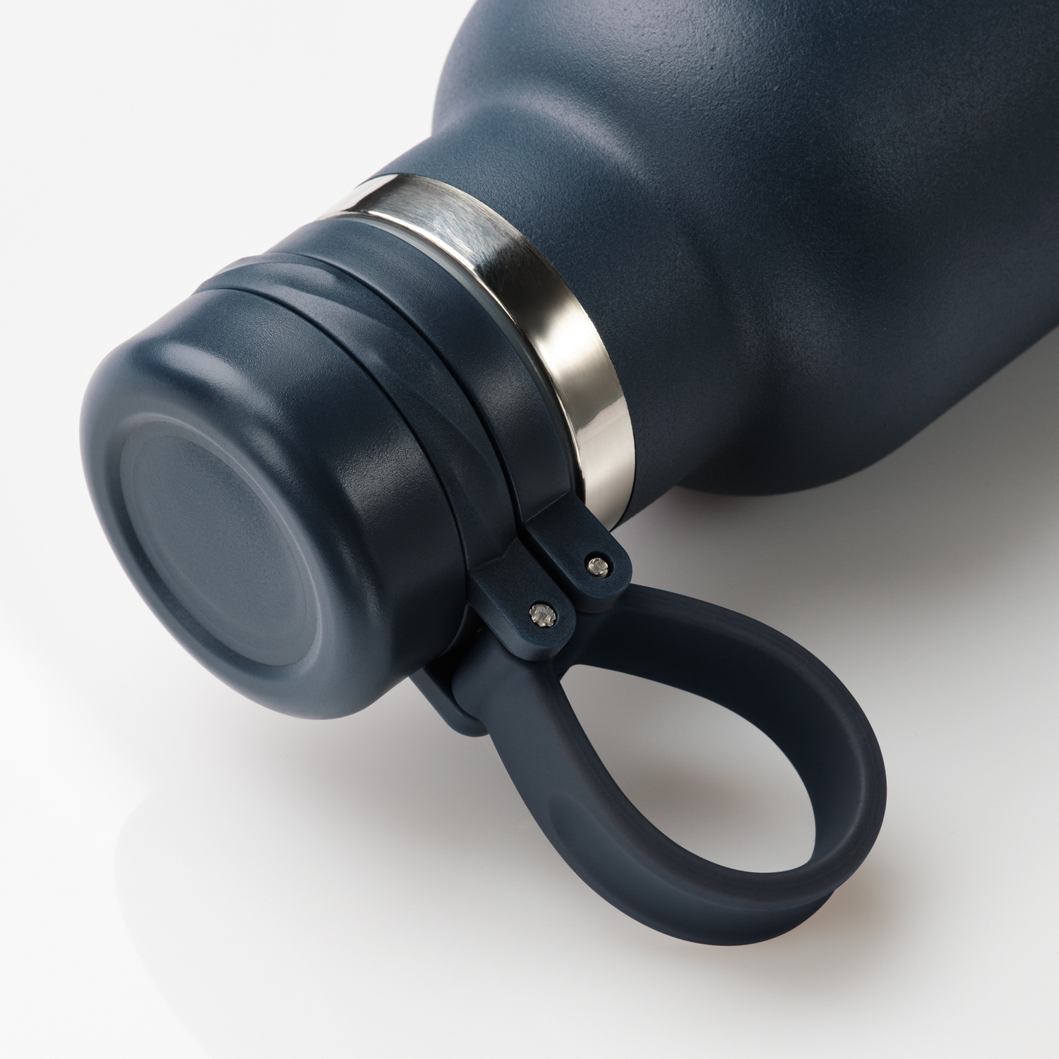 Вакуумная герметичная конструкция выполнена из двухслойной высоколегированной стали 304 марки, что делает конструкцию более прочной и устойчивой к мелким сколам и царапинам. Крышка из высококачественного пластика, оснащена удобной силиконовой петелькой для переноски. Бутылку можно переворачивать и класть в сумку.