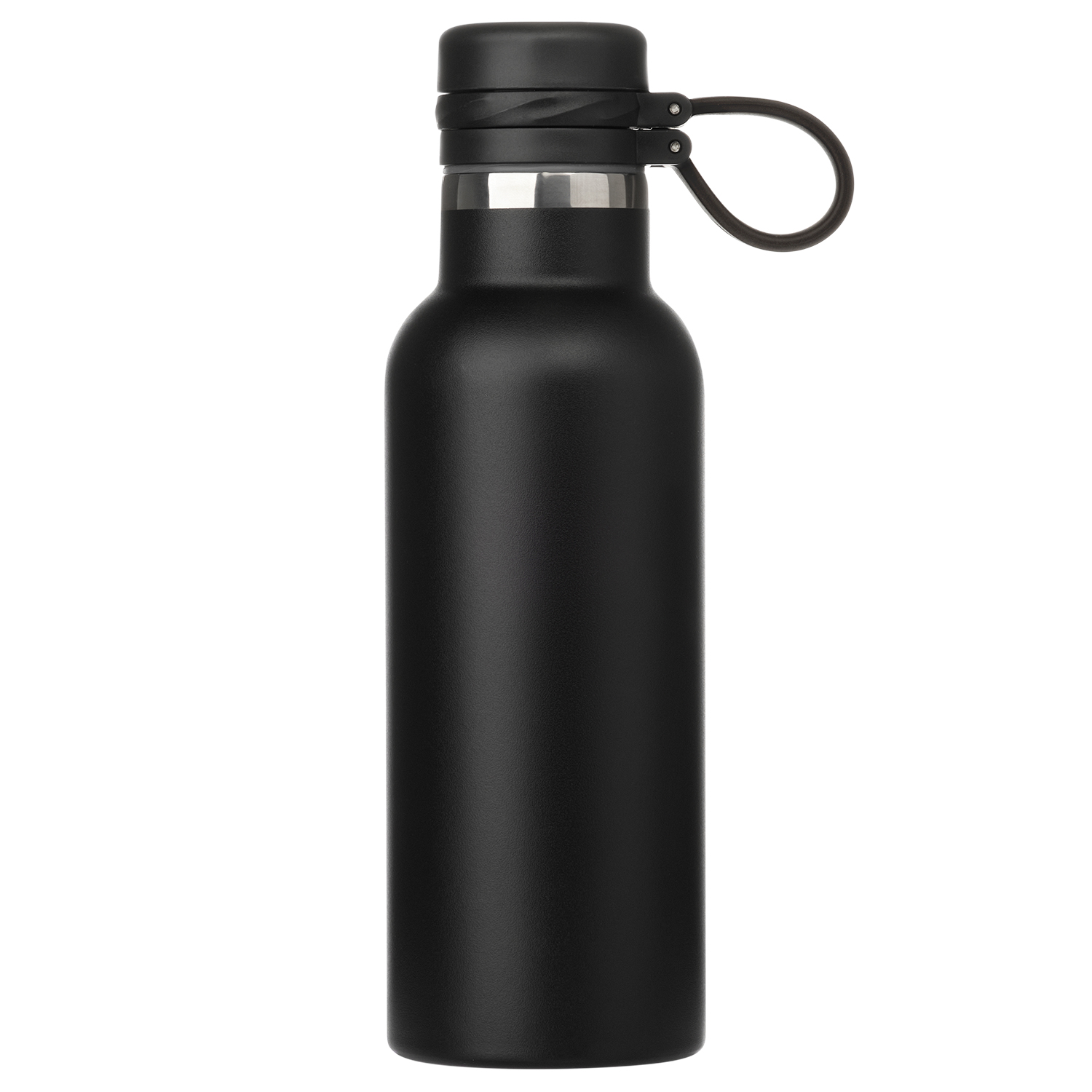 Вакуумная герметичная конструкция выполнена из двухслойной высоколегированной стали 304 марки, что делает конструкцию более прочной и устойчивой к мелким сколам и царапинам. Крышка из высококачественного пластика, оснащена удобной силиконовой петелькой для переноски. Бутылку можно переворачивать и класть в сумку.