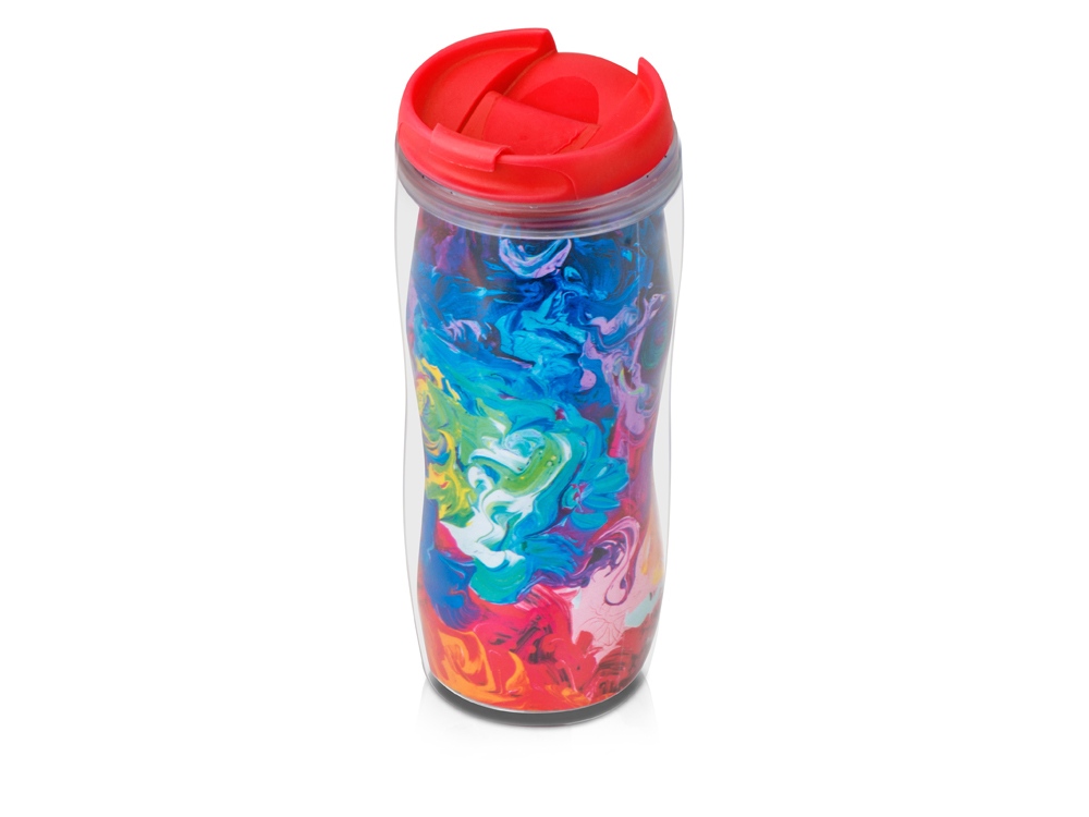 Термокружка Mony 400мл, под цифровую печать, прозрачный/красный