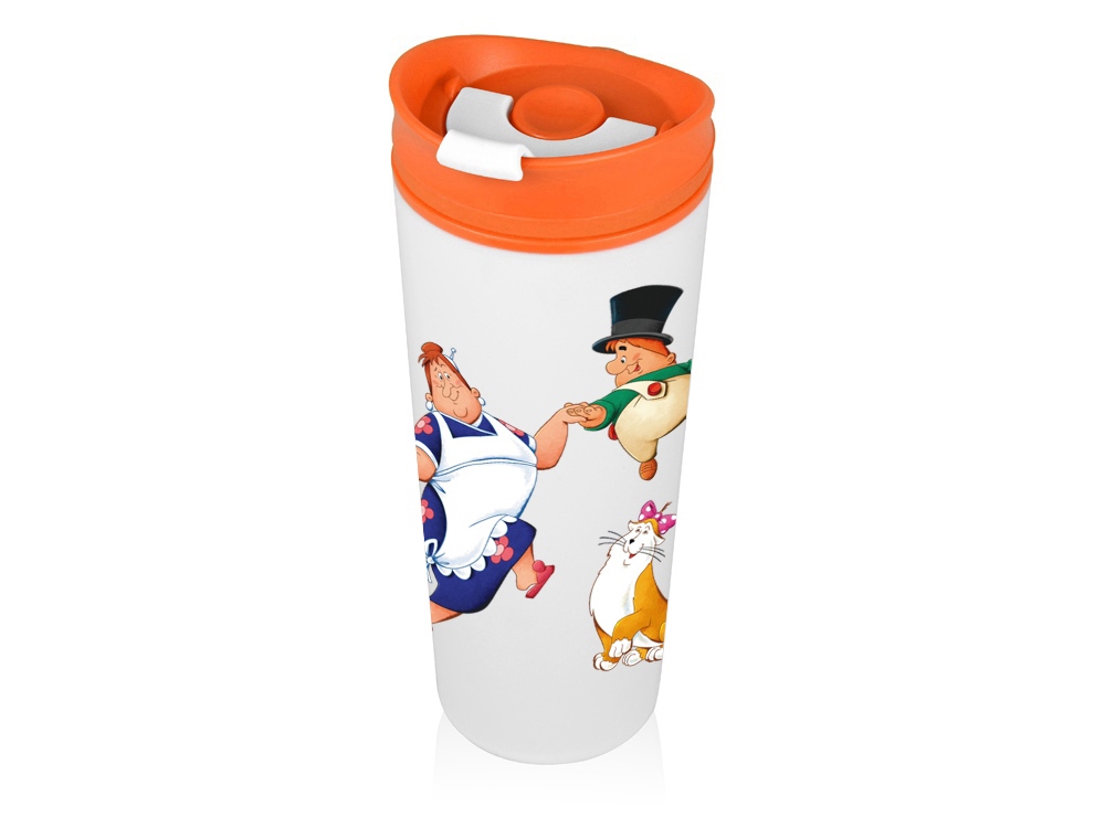 Термокружка пластиковая, двухцветная 500 мл Карлсон, белый/оранжевый