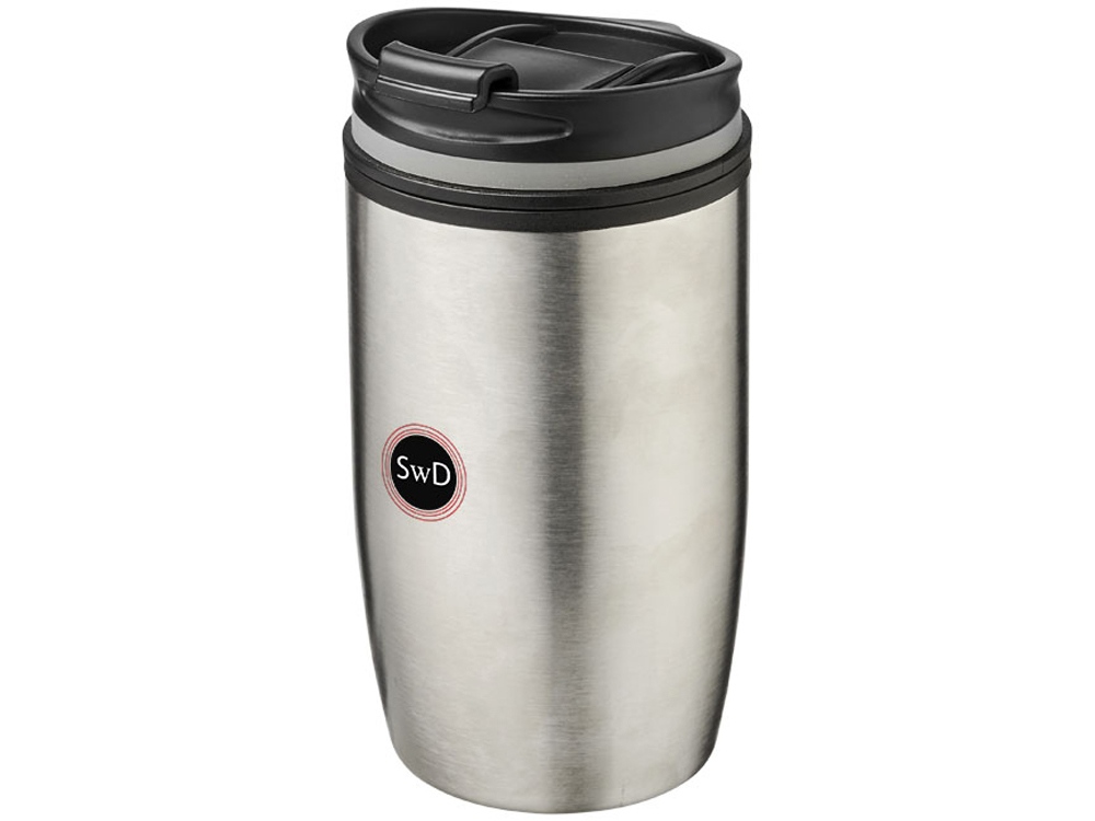 Термокружка Prado объемом 330 мл. Двустенная термокружка с закручивающейся крышкой и закрывающимся откидным верхним колпачком для питья. Конструкция крышки позволяет блокировать откидную крышку как в закрытом, так и в открытом положении. Объем — 330 мл. Нержавеющая сталь с пластиковой подкладкой.