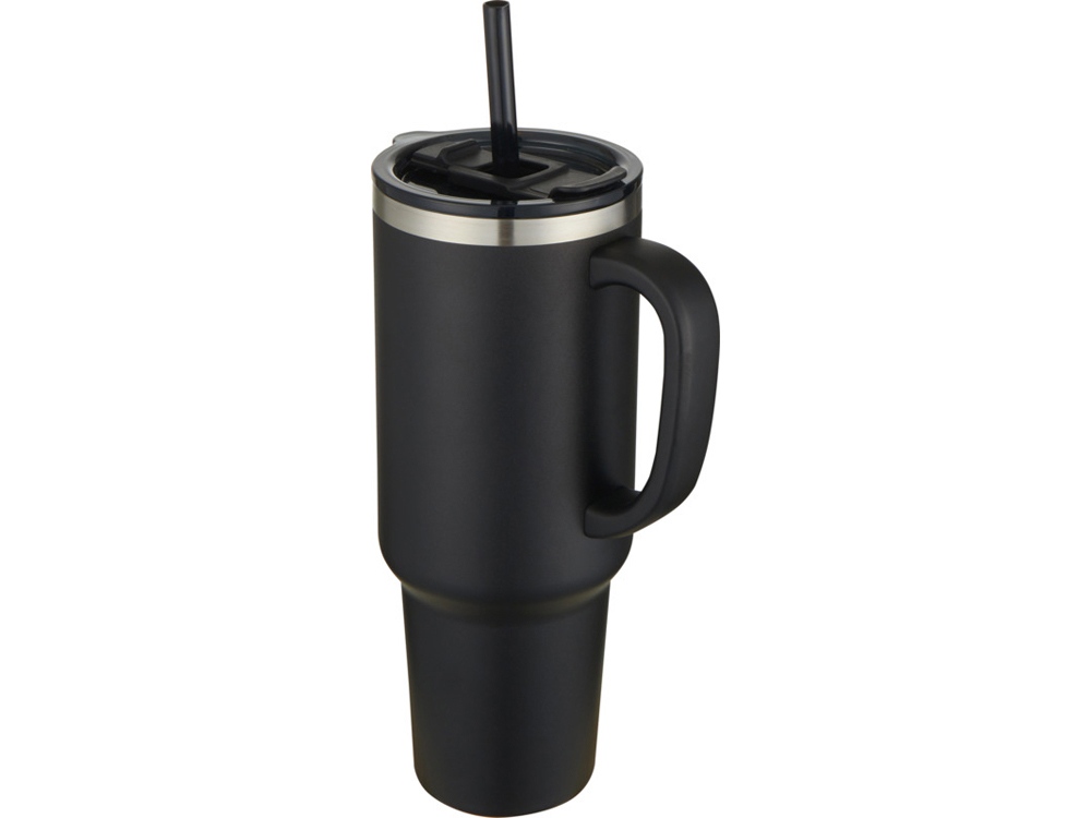 Sydney медная кружка с двойными стенками, сертифицированная согласно RCS, с вакуумной изоляцией и соломинкой, 1200 мл - сплошной черный