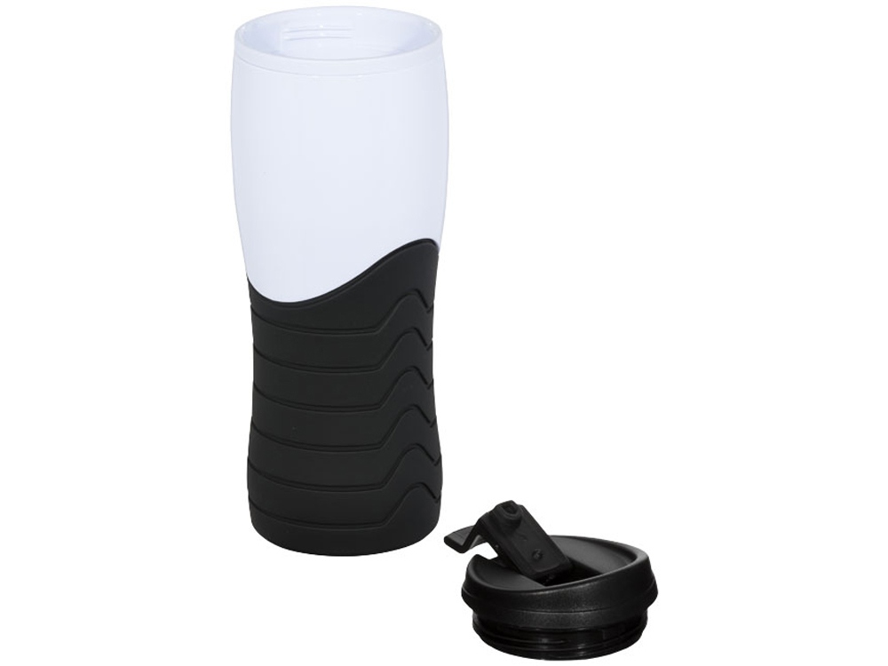 Термокружка Tracker 400 мл. Термокружка с двойными стенками с завинчивающейся герметичной крышкой. Текстурированное прорезиненное основание с глянцевой верхней частью. Объем – 400 мл. АБС-пластик.