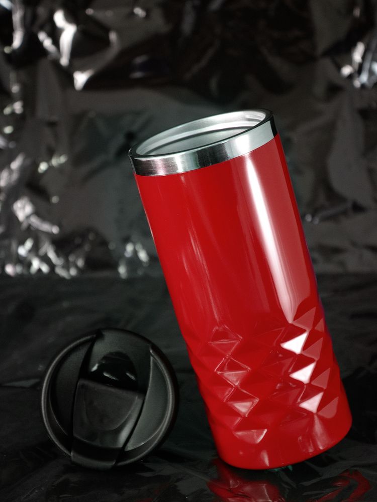 Покрытие кружки Prism напоминает глянцевую эмаль, — и рельефная поверхность корпуса дополнительно подчеркивается яркими бликами.