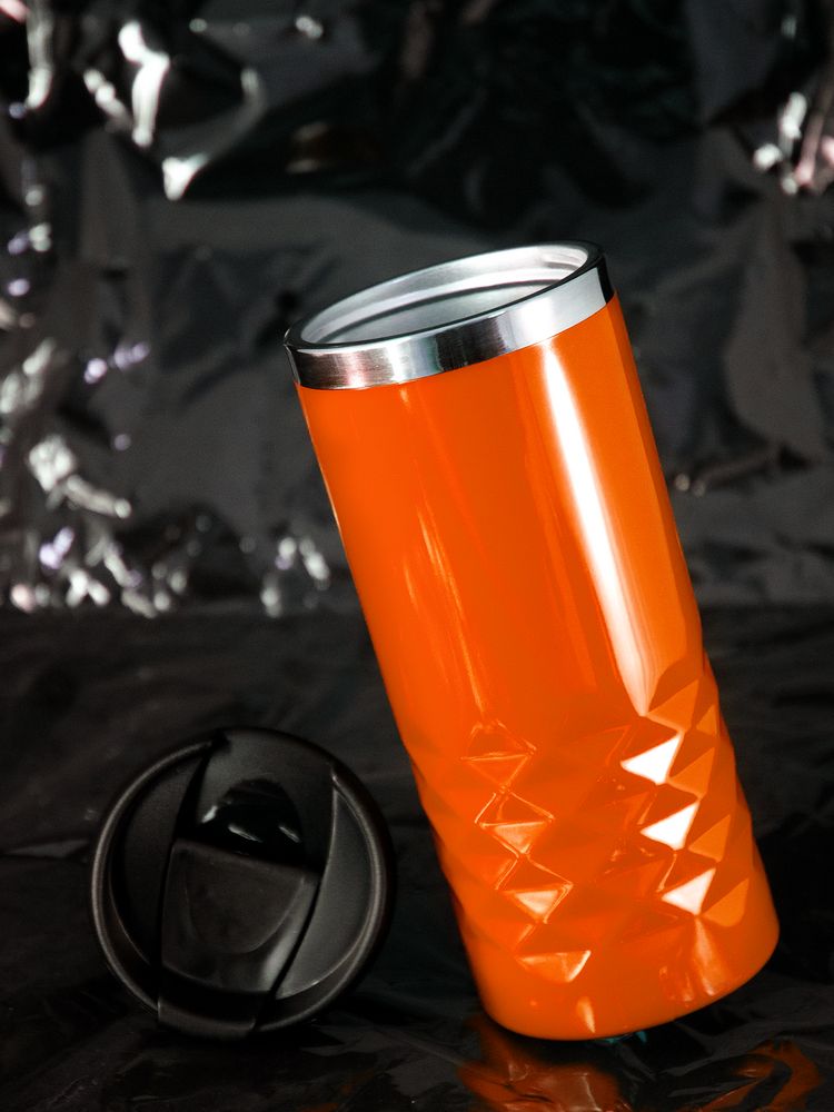 Покрытие кружки Prism напоминает глянцевую эмаль, — и рельефная поверхность корпуса дополнительно подчеркивается яркими бликами.