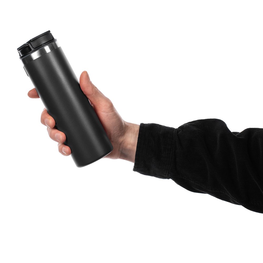 Лаконичный дизайн с ровным цилиндрическим корпусом — специально для круговой печати и гравировки, достаточный объем и привлекательная деталь в виде подвижной квадратной ручки для переноски.