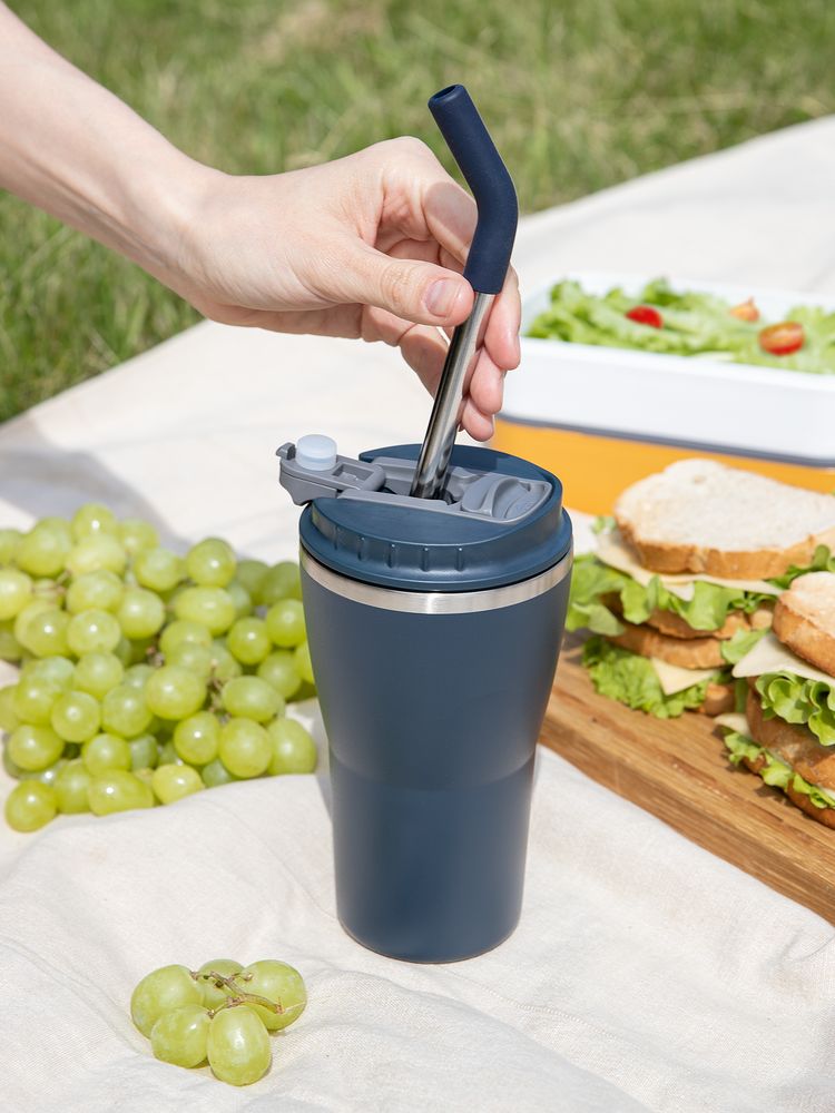 корпус - нержавеющая сталь, крышка - пластик, нержавеющая сталь, пластик, трубочка - нержавеющая сталь, пищевой силикон