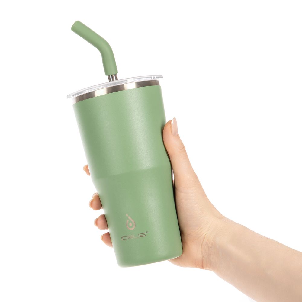 корпус - нержавеющая сталь, крышка - пластик, нержавеющая сталь, пластик, трубочка - нержавеющая сталь, пищевой силикон