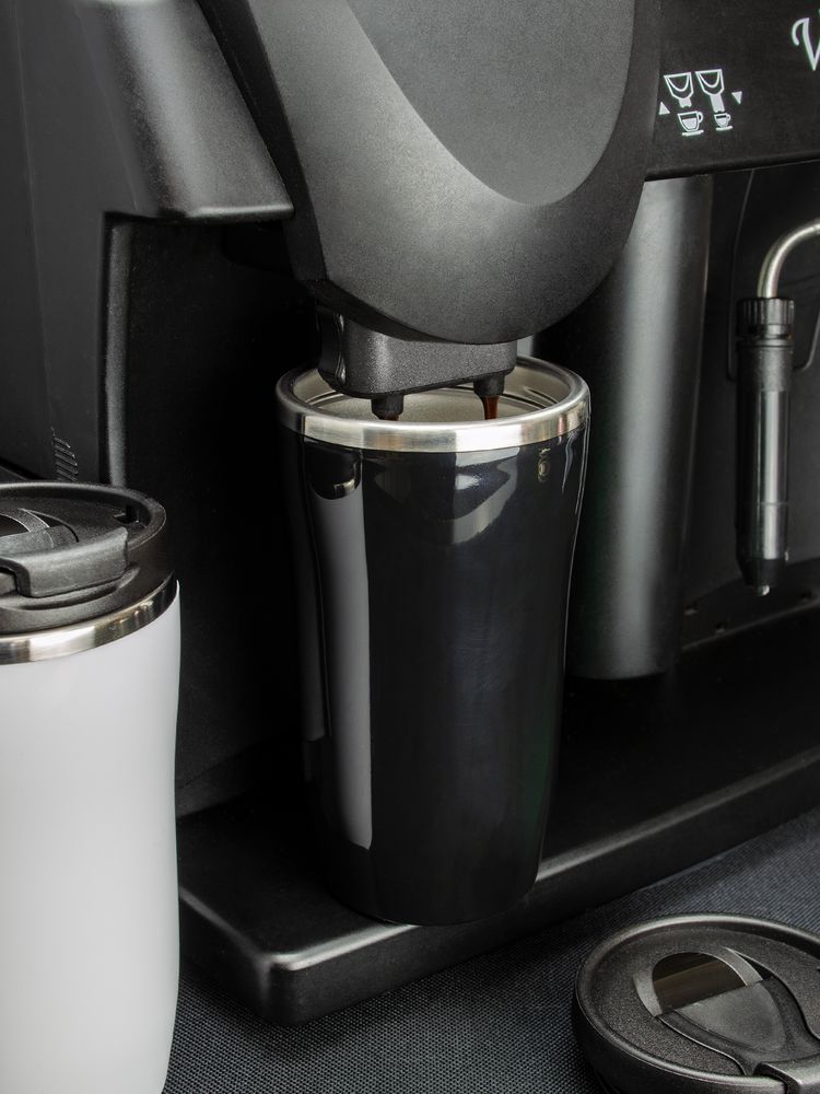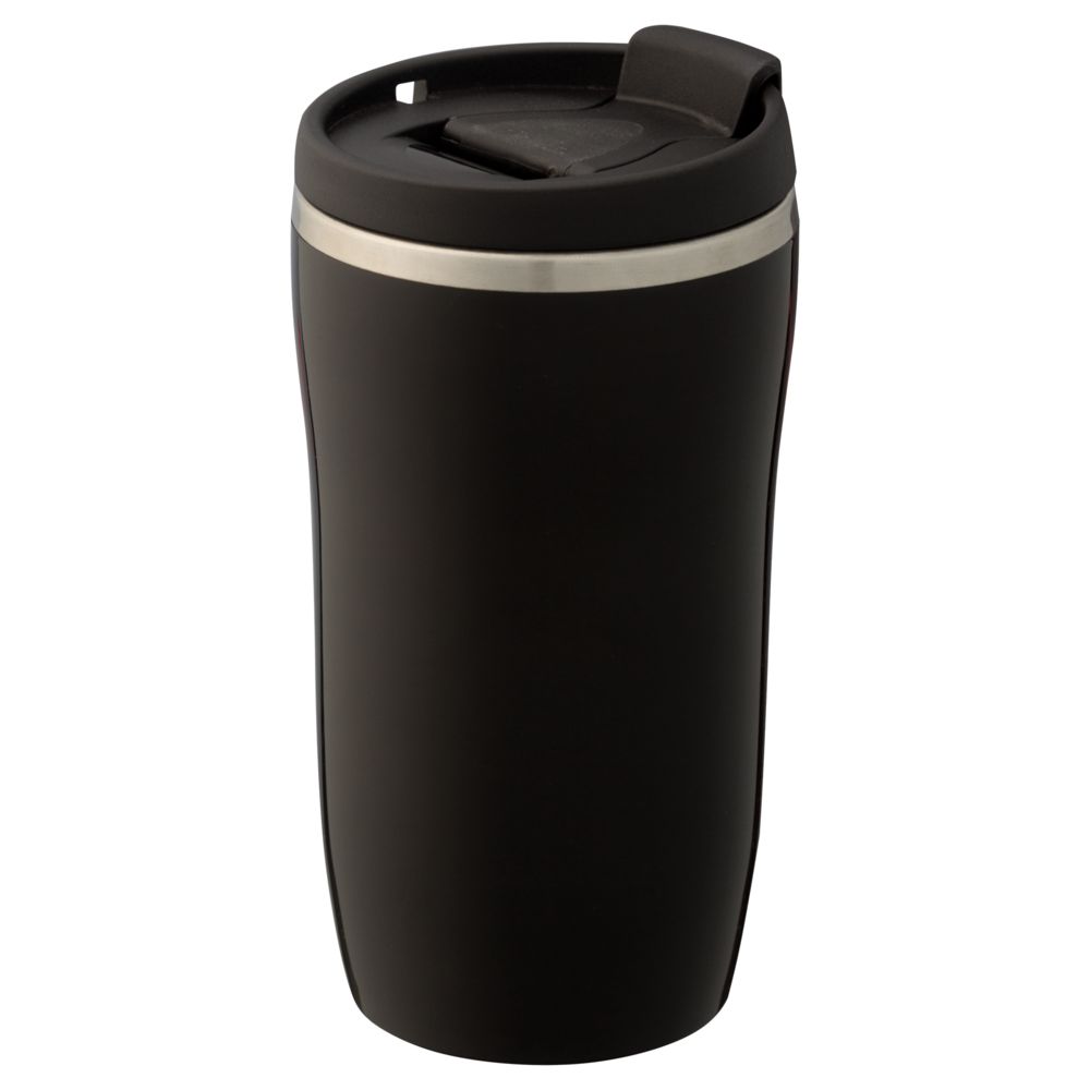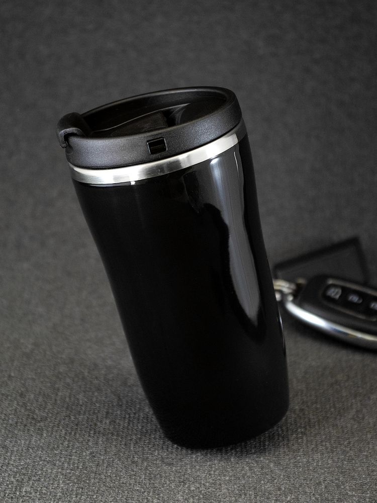 Двухслойная конструкция из пластика снаружи и пищевой нержавеющей стали внутри. Герметичная завинчивающаяся крышка с откидным клапаном для питья. В отверстие в крышке можно вставить шнурок для удобного ношения стакана на руке. Шнурок в комплект не входит.