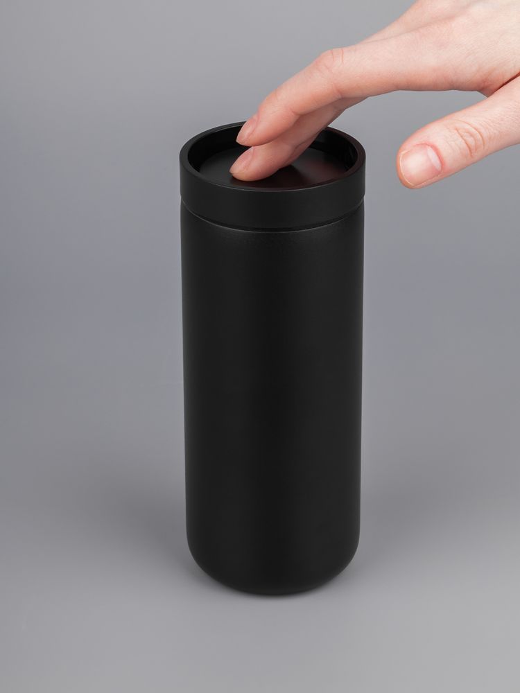 - Герметичная завинчивающаяся крышка с силиконовым уплотнителем и питьевой системой с клапаном — технология 360° позволяет одним нажатием открывать кружку и пить с любой стороны