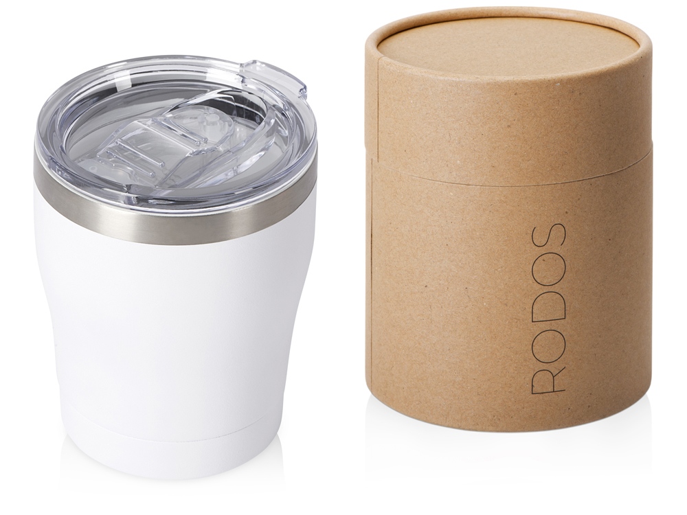 Вакуумная термокружка c керамическим покрытием Rodos, непротекаемая крышка, 350 мл, белый