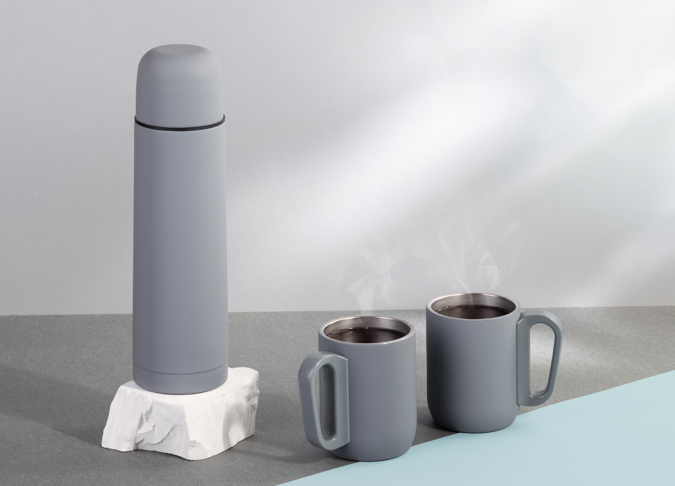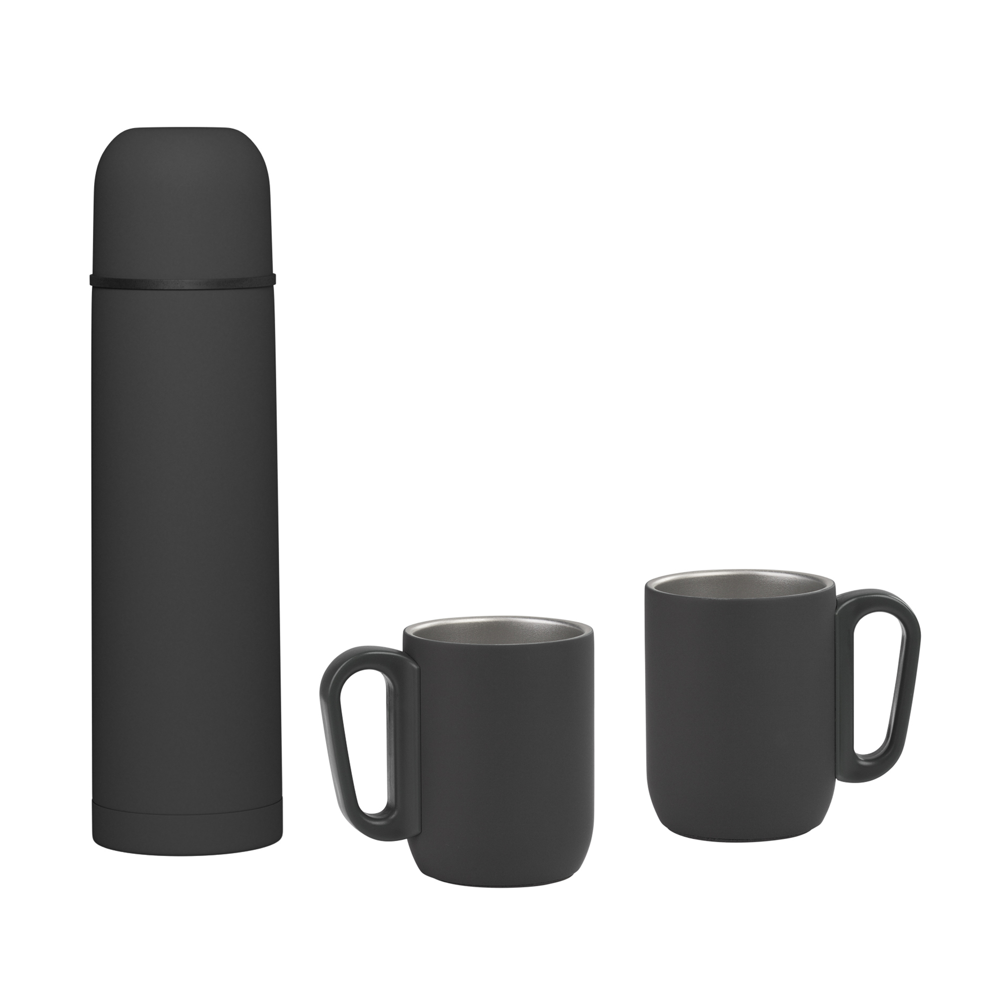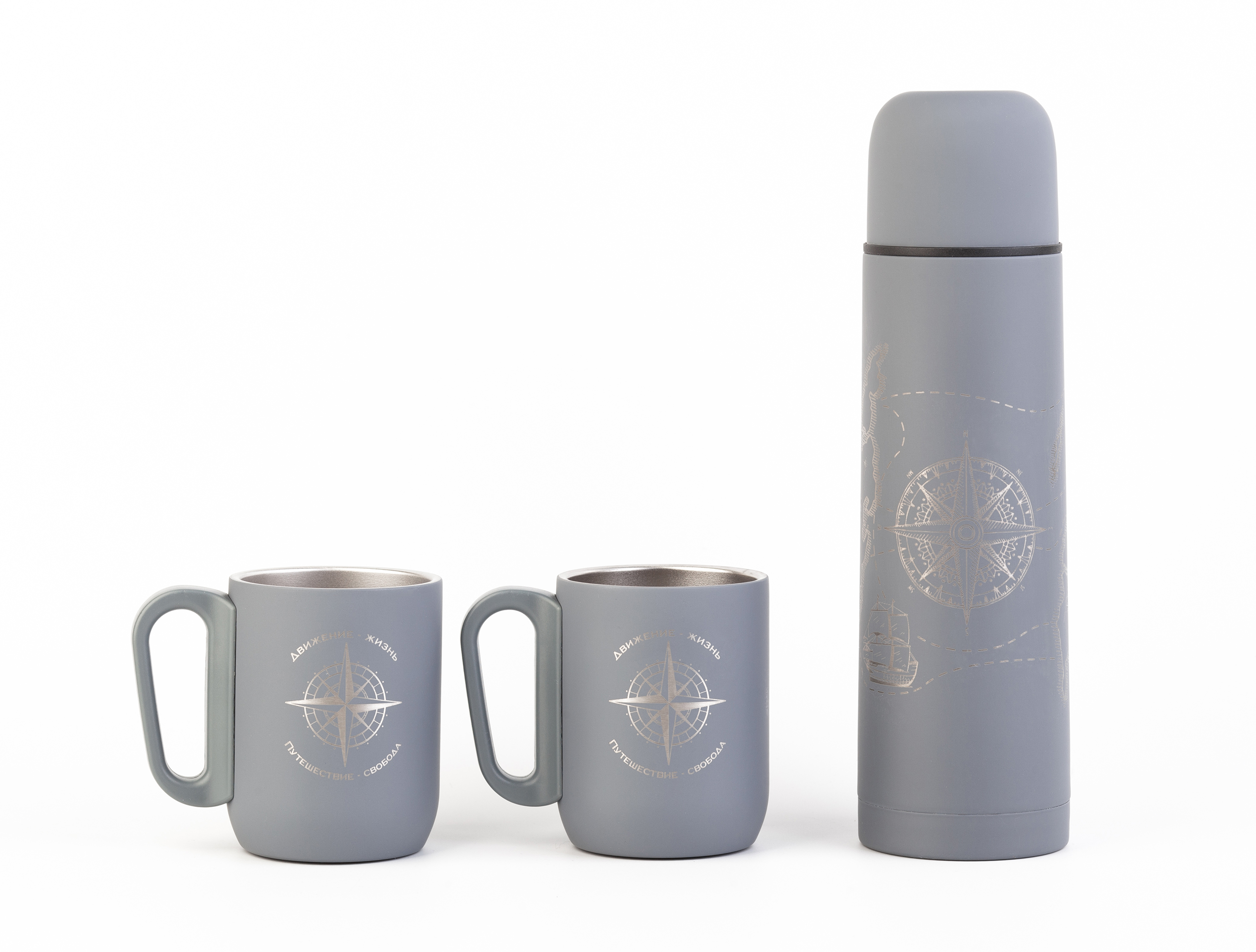 Набор "Гейзер" (термос, 2 кружки), покрытие soft touch, серый