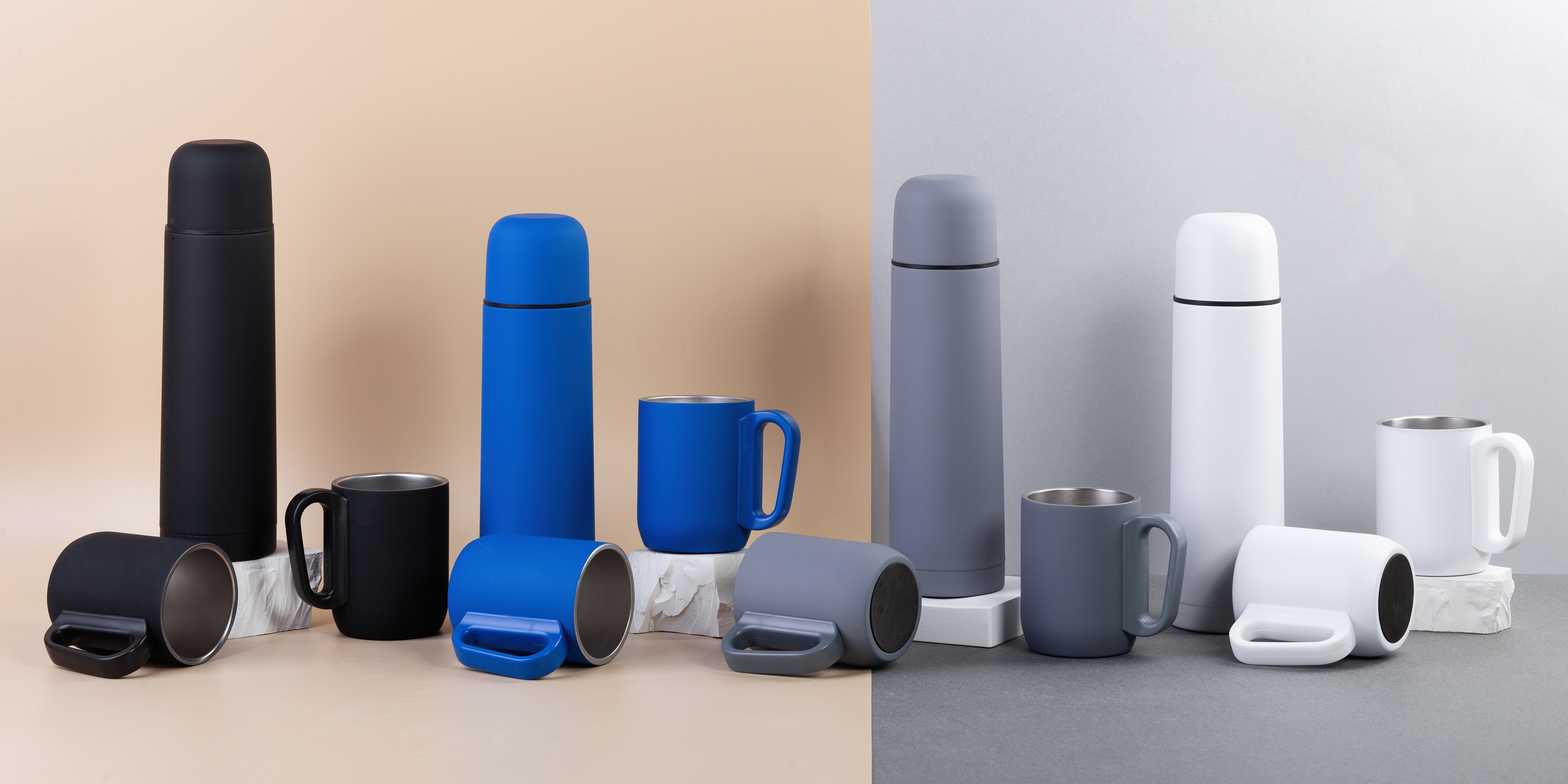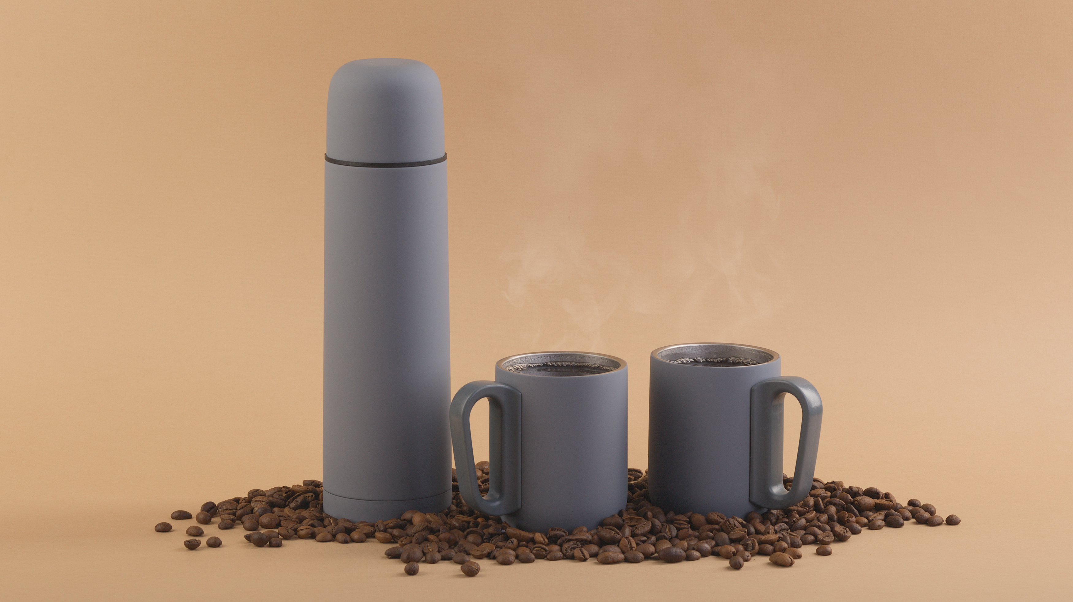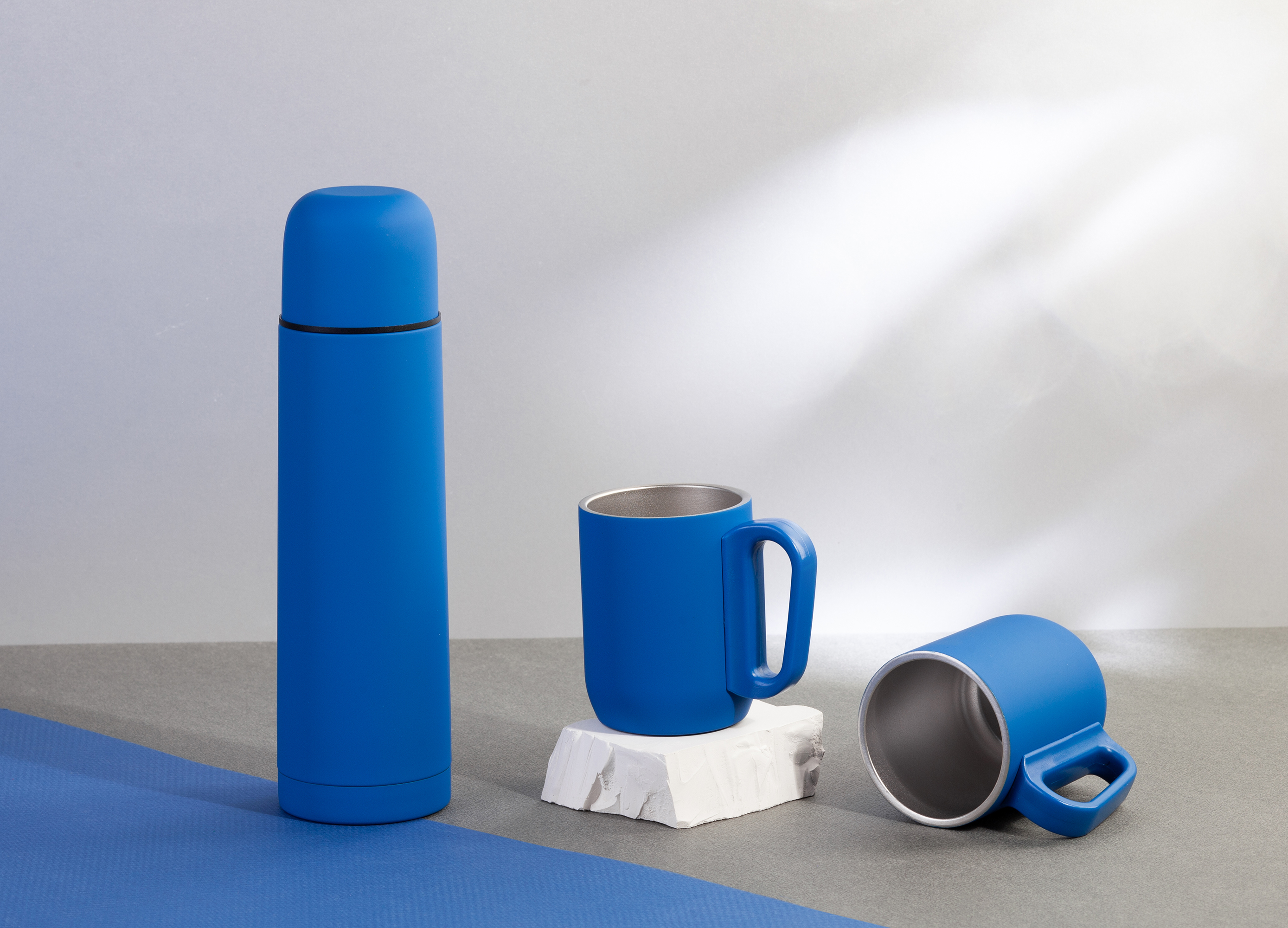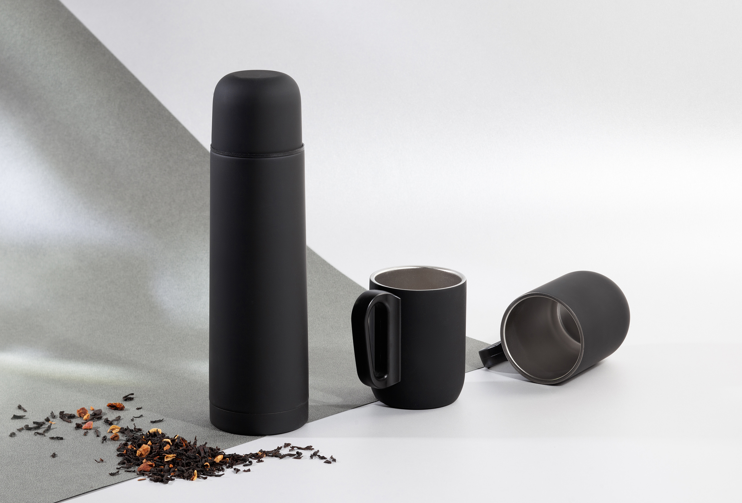 Набор "Гейзер" (термос, 2 кружки), покрытие soft touch, серый