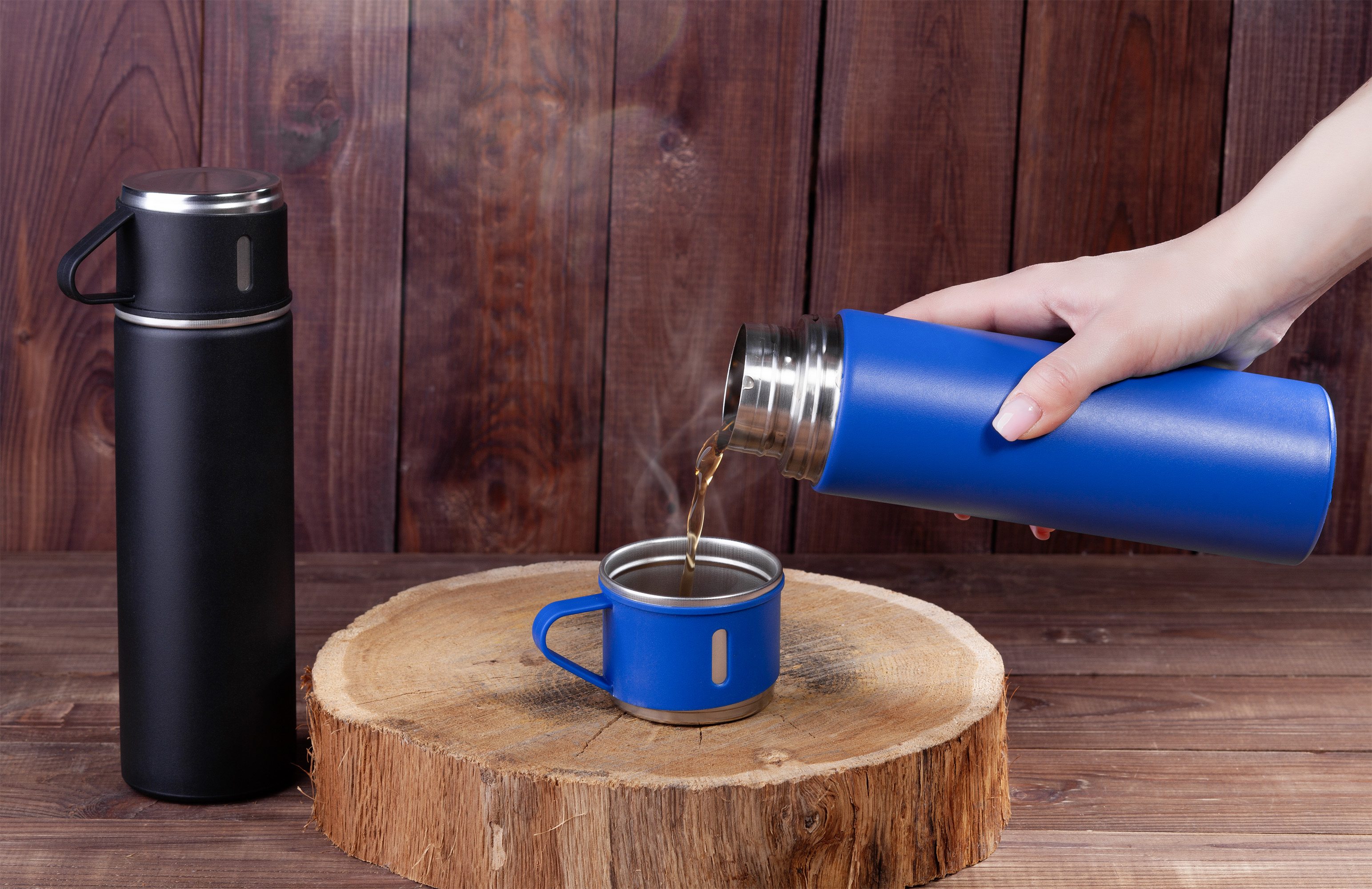 Термос удобно держать за ручку. Корпус в защитном порошковом покрытии (powder), рекомендуем гравировку газовым лазером и объемную уф-печать, см. фото. Колба из нержавеющей пищевой 304 стали. Клапан с кнопкой для удобного розлива и эффективного сохранения температуры напитка.