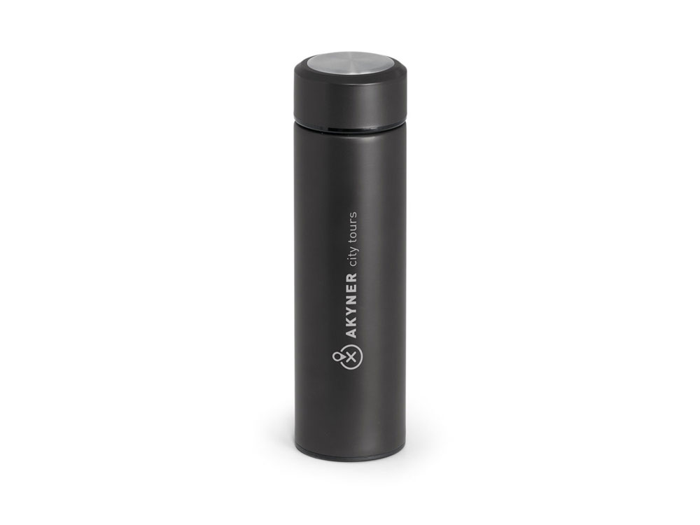 Термос из нержавеющей стали с двойным корпусом и ситечком для заваривания чая. Емкость до 470 мл. Поставляется в подарочной упаковке. Вид нанесения, рекомендуемый поставщиком: гравировка, трафаретная печать