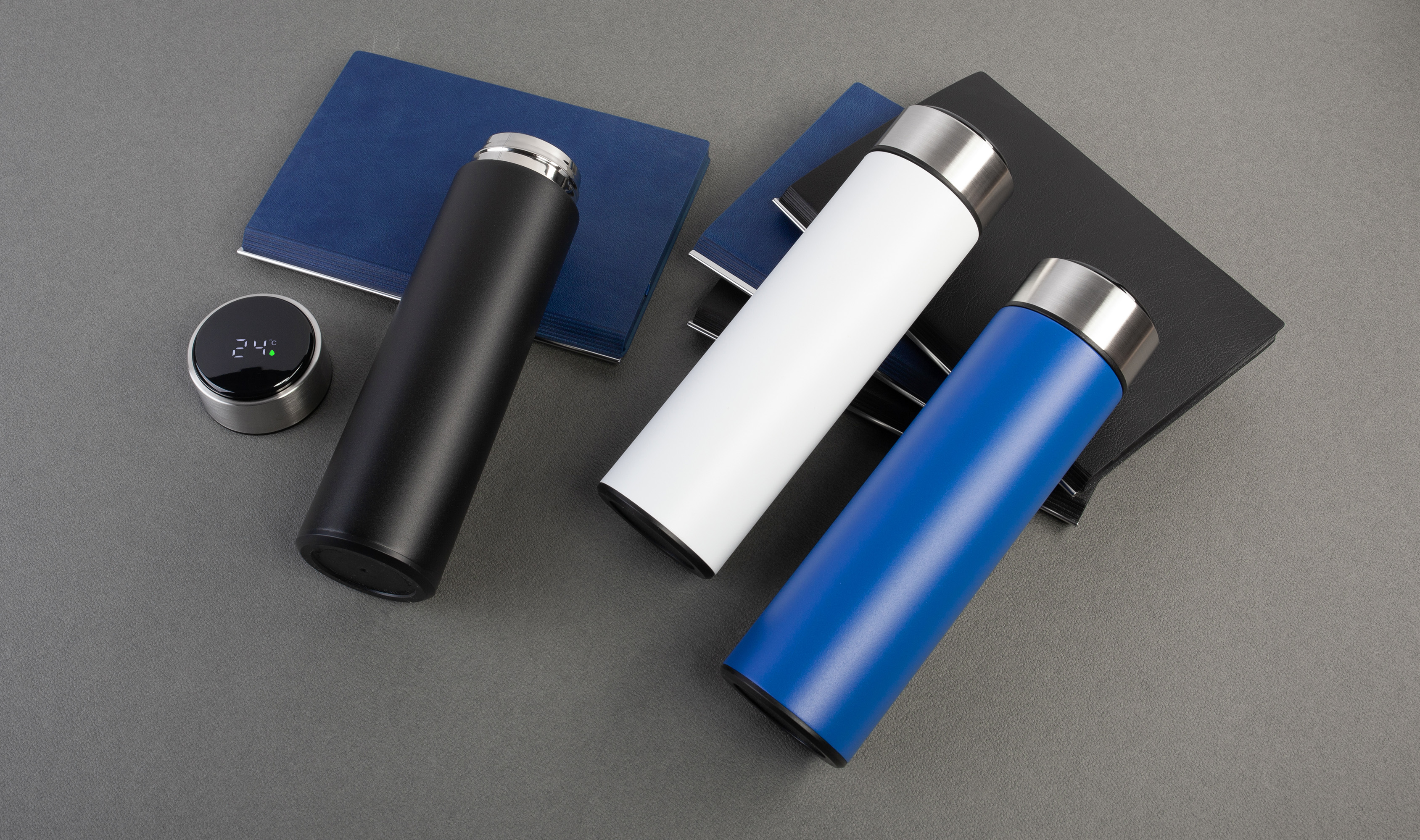 Термос "Бостон silver line" 500 мл с индикацией температуры, пудра, черный
