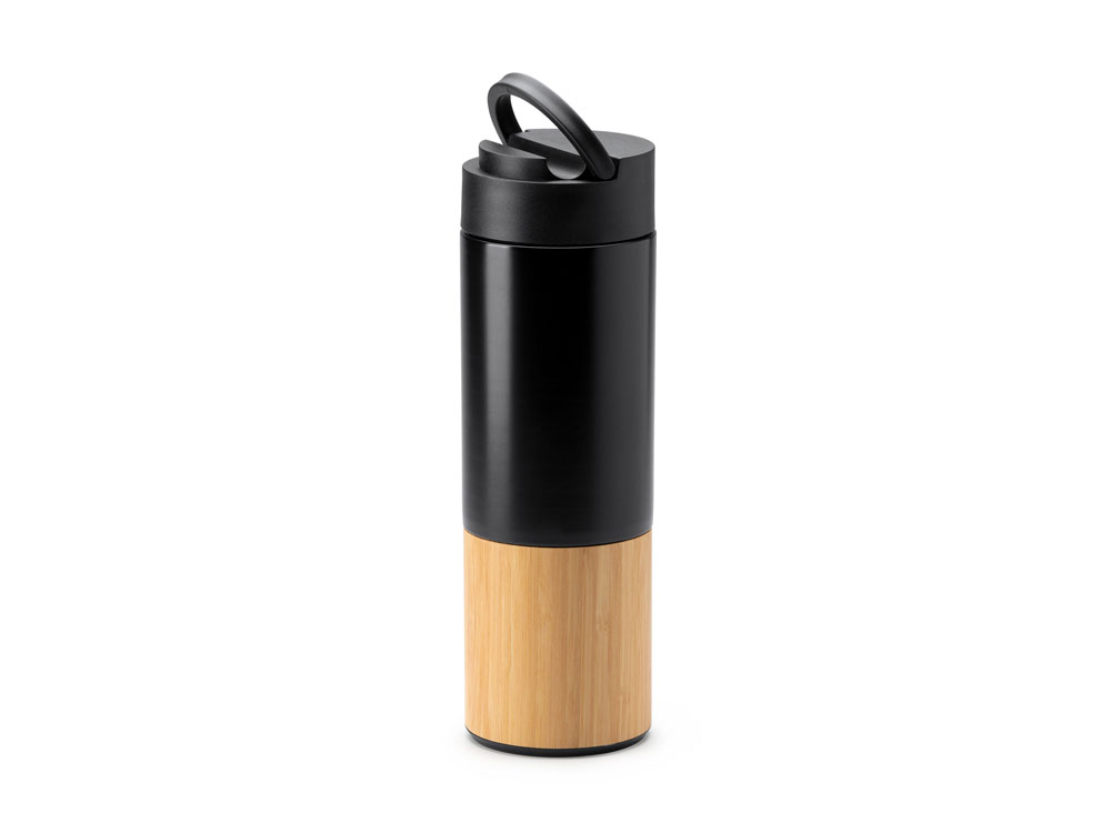 Термос из нержавеющей стали 304 и деталями из бамбука, 450 мл, черный/натуральный