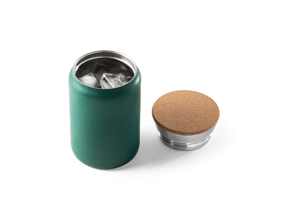 Термокружка из нержавеющей стали с вакуумной изоляцией, двойными стенками, внутренней стенкой с медным покрытием и пробковой крышкой. Кружка емкостью до 350 мл сохраняет напитки горячими в течение 8 часов и холодными в течение 48 часов. d73 x 125 мм