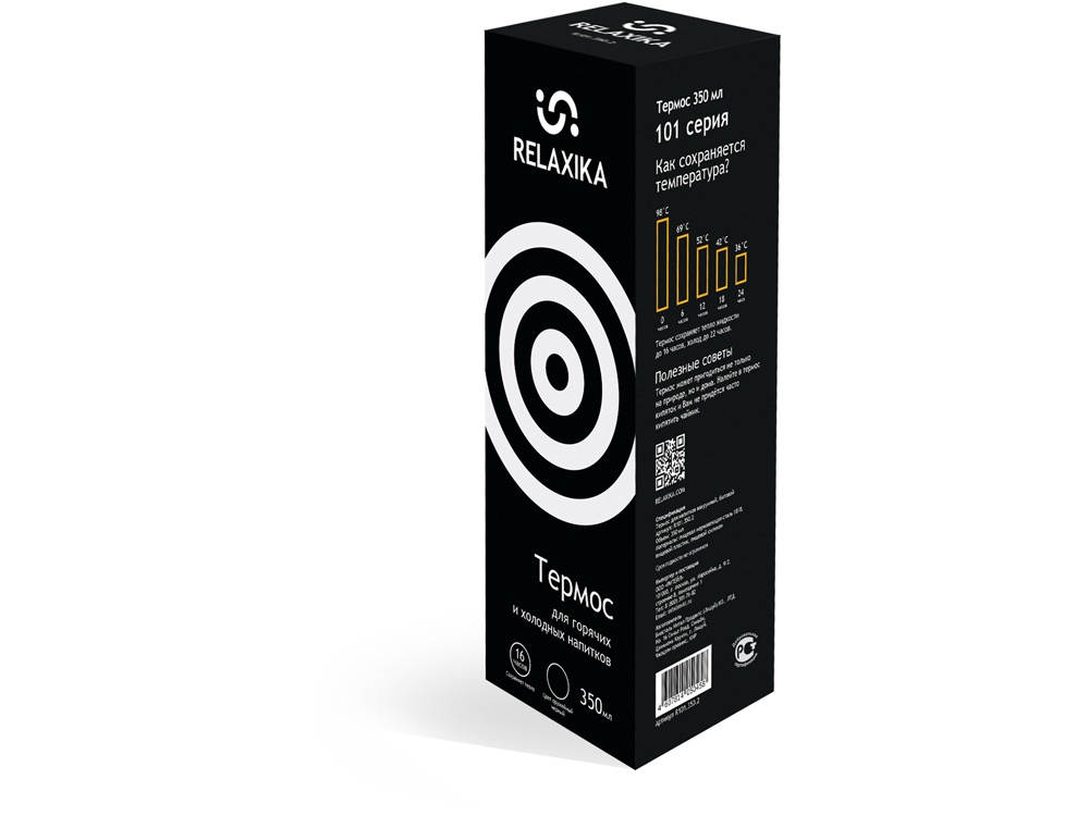 Классический термос Relaxika с высокими показателями удержания температуры напитка для походов, путешествий, спорта и ежедневного использования. Прочные двойные стенки из высококачественной нержавеющей стали 18/8 с вакуумной изоляцией гарантируют, что ваш напиток останется холодным в течение 22 часов и горячим до 16 часов. Этот материал не только прочен, но и гигиеничен, не выделяет никаких вредных для здоровья веществ. Ваши напитки сохраняет естественный вкус и не приобретут посторонний запах. Напиток остается холодным до 22 часов и горячим до 16 часов.
