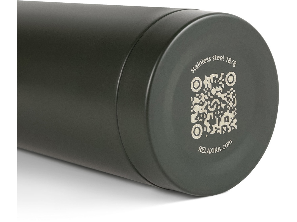Классический термос Relaxika черного цвета с высокими показателями удержания температуры напитка для походов, путешествий, спорта и ежедневного использования. Прочные двойные стенки из высококачественной нержавеющей стали 18/8 с вакуумной изоляцией гарантируют, что ваш напиток останется холодным в течение 28 часов и горячим до 22 часов. Этот материал не только прочен, но и гигиеничен, не выделяет никаких вредных для здоровья веществ. Ваши напитки сохраняет естественный вкус и не приобретут посторонний запах.