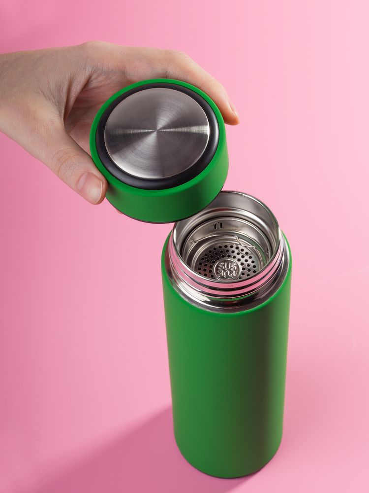 Компактный термос Percola пригодится и в городе, и на природе. Съемное ситечко поможет заварить чистую чашку чая или кофе, а цилиндрический корпус даст широкие возможности для маркетинговых сообщений.