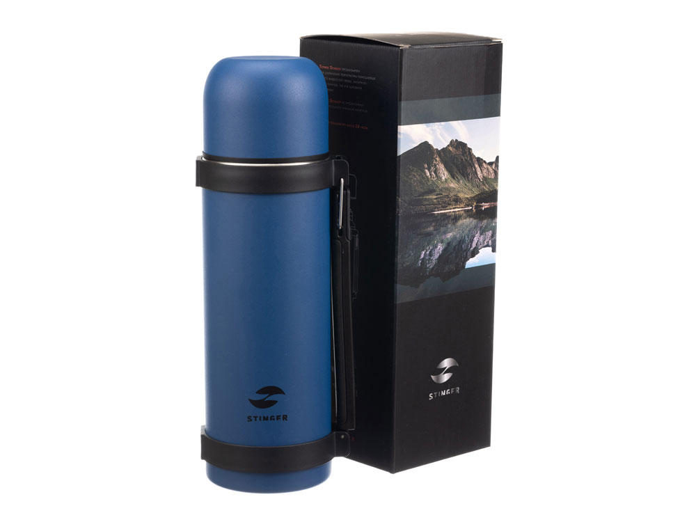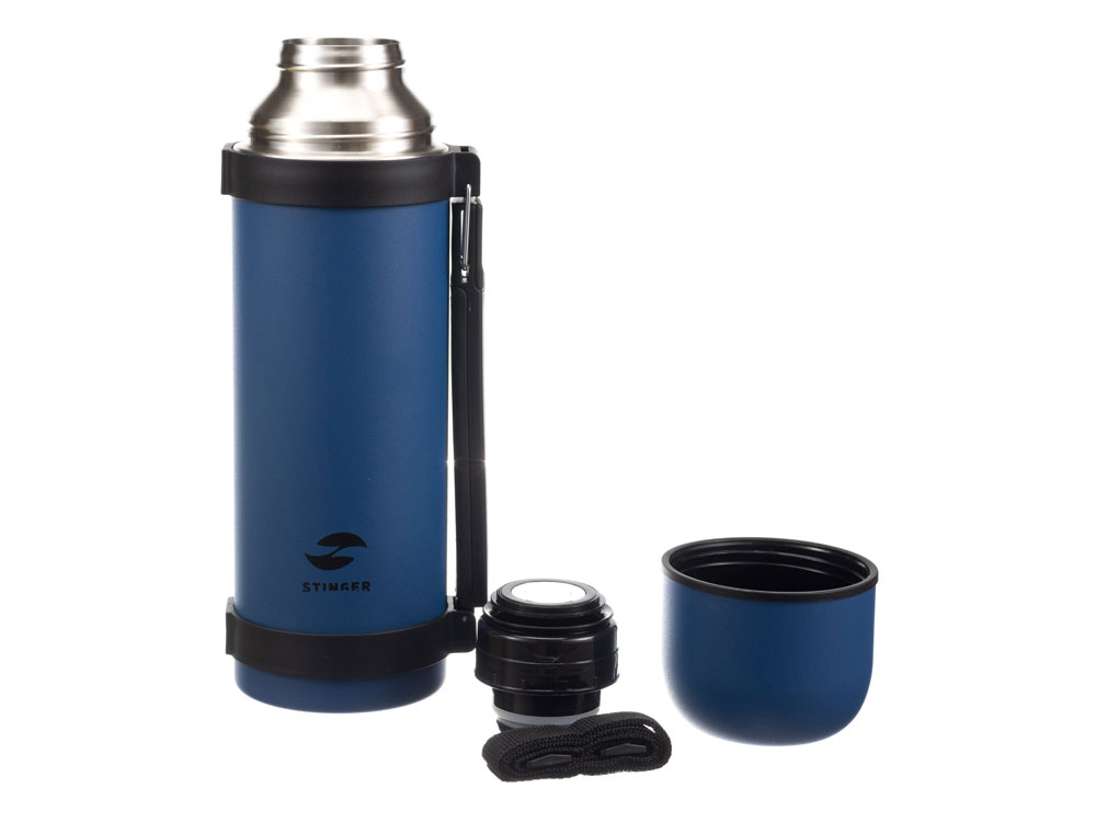 Термос Stinger, 1,2 л, широкий с ручкой, нержавеющая сталь, синий, 12,4 х 10,2 х 31,8 см
