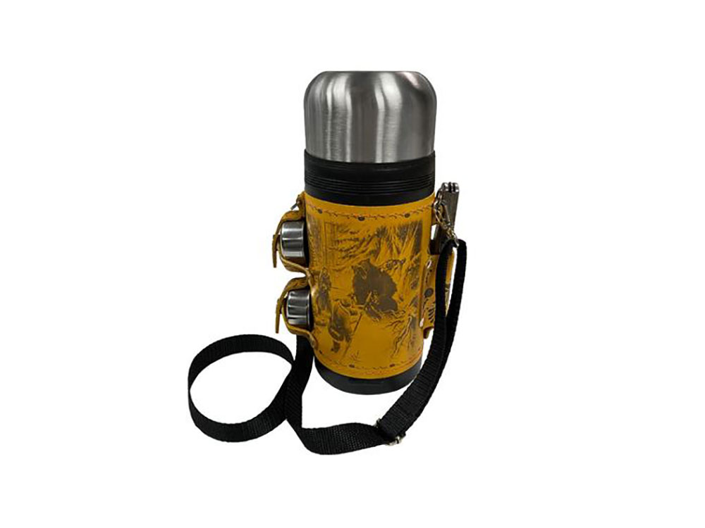 - Термос 1,2л (нерж.сталь) с металлической колбой в чехле из натуральной кожи с художественным выжиганием - 1 шт.