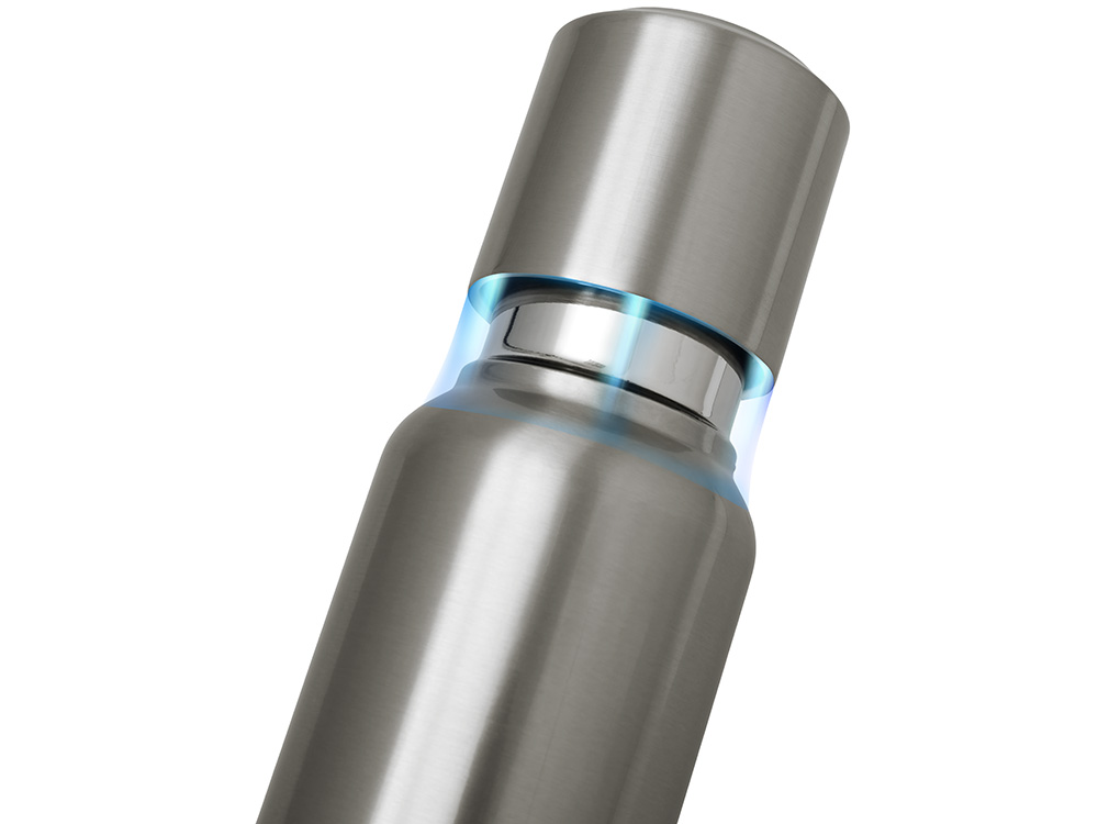 • Продуманная система термоизоляции: вакуум в корпусе, вакуум во внутренней завинчивающейся втулке и вакуум в крышке — максимальное удержание температуры (горячее — >15 ч, тепло — >24 ч).