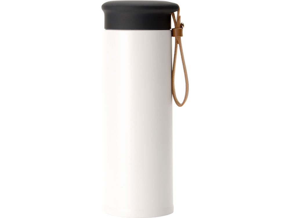 Термос герметично завинчивается на крышку, оснащенную съемным ремешком из качественной ПУ кожи. Крышка имеет прорезиненное покрытие, что создает интересное сочетание текстур в рамках одной модели. Корпус имеет элегантную рельефную поверхность с антискользящим эффектом.