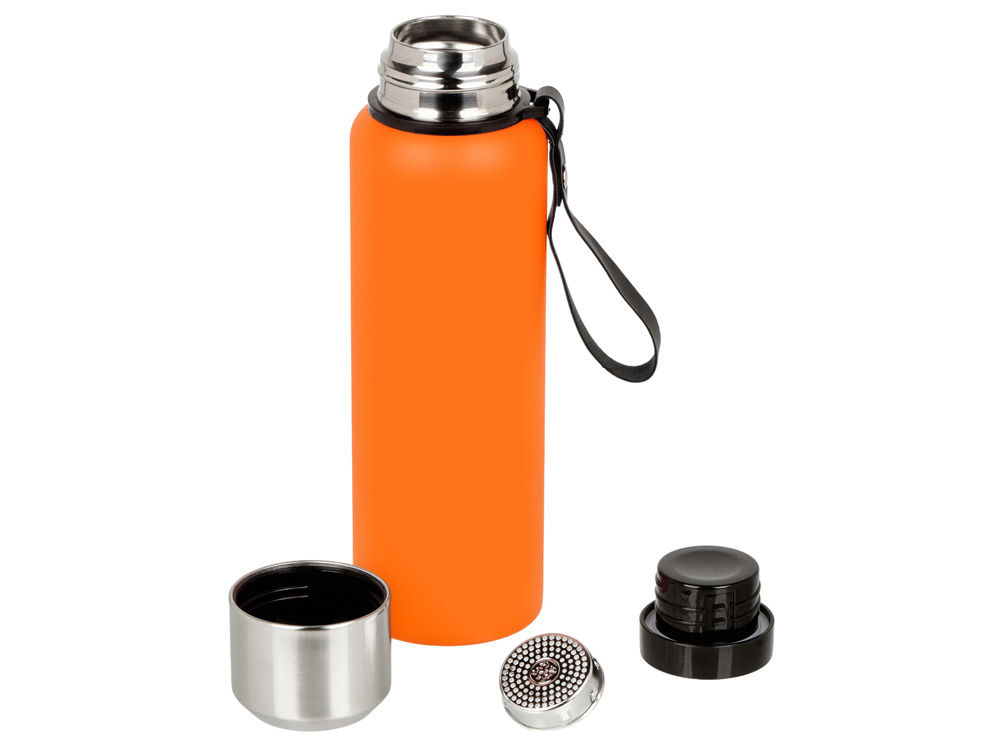 Вакуумный термос c двойными стенками из пищевой нержавеющей стали 304 марки для небольших путешествий и отдыха на природе. Надежно удерживает тепло и холод в течение 24 часов. Крышку можно использовать в качестве чашки. В комплекте имеется съемное ситечко из нержавеющей стали. Имеется прочный и удобный ремешок для переноски. Объем 800 мл.